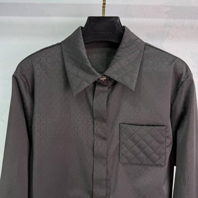 Chane*2025 new jacquard patterned quilted pocket shirt, custom-made from imported YB double crepe silk. The texture differs from regular 0.3 momme silk, resulting in a smoother, shinier look and easier to care for. The long-sleeved shirt features a straight-shoulder silhouette, simple and stylish craftsmanship, resulting in a lustrous, rich jacquard pattern. The diamond-patterned camellia pattern echoes the monogrammed logo on the hidden placket. The floral cuffs and quilted pockets highlight Chanel's classic design, effortlessly showcasing intellectual elegance! Available in 3 sizes per color (Sml