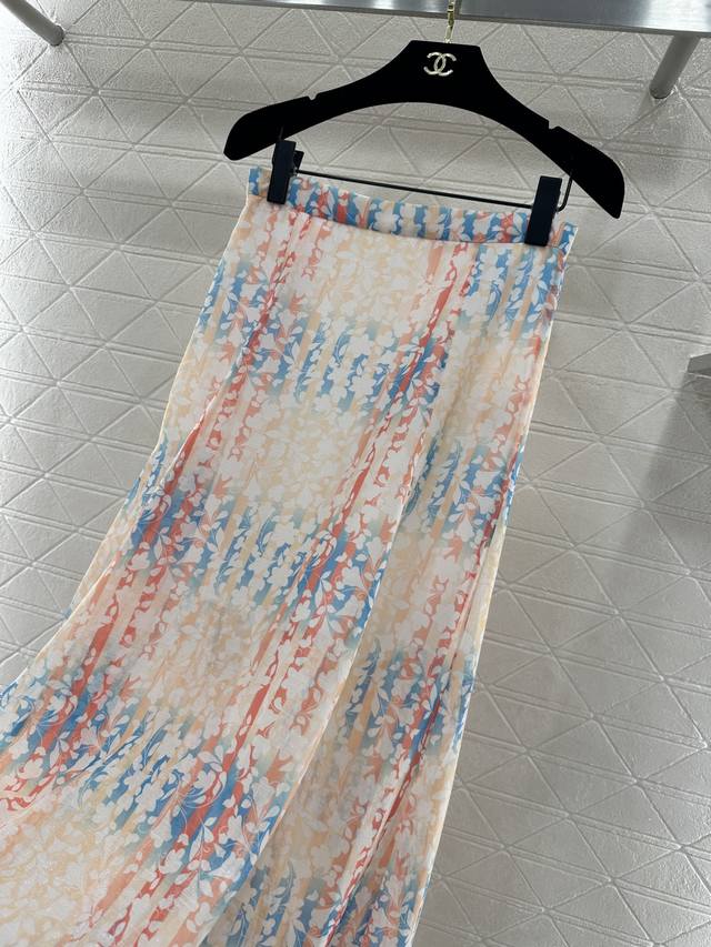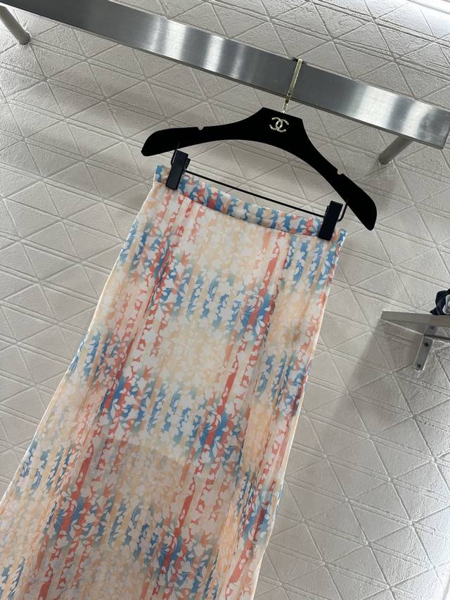 Chane*2026 New Arrival Ddd Active Print Midi Skirt Ddd Custom Yb Imported silk yarn material, lightweight, soft and skin-friendly, high-waisted midi skirt design, the gradient effect is simply the epitome of spring romance! The watercolor texture of pink, orange and light blue intertwined is gentle and lively, the light gauze fabric makes the skirt sway with an ethereal feel. Whether paired with a simple knit or a delicate shirt, it can create a French elegance atmosphere, infusing the gentleness of spring into every step. It has a built-in half-lining to prevent exposure, the cut flatters the figure and exudes a tranquil temperament, making the outfit more refined. The first choice for early spring vacation. Custom fabric and accessories, look for the high version 36 38 40. DDD