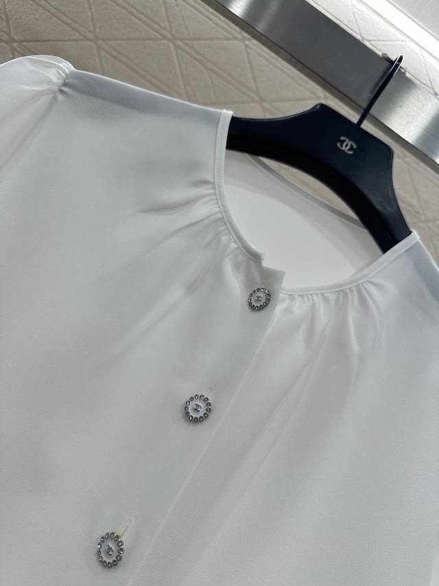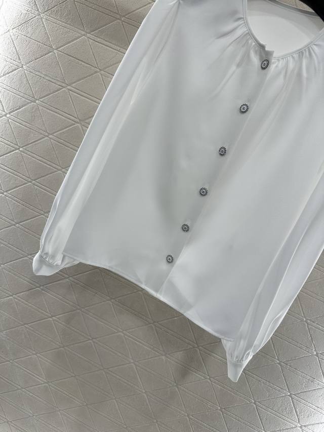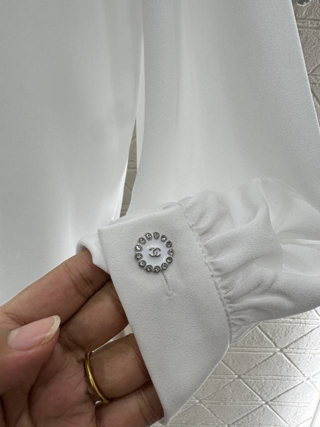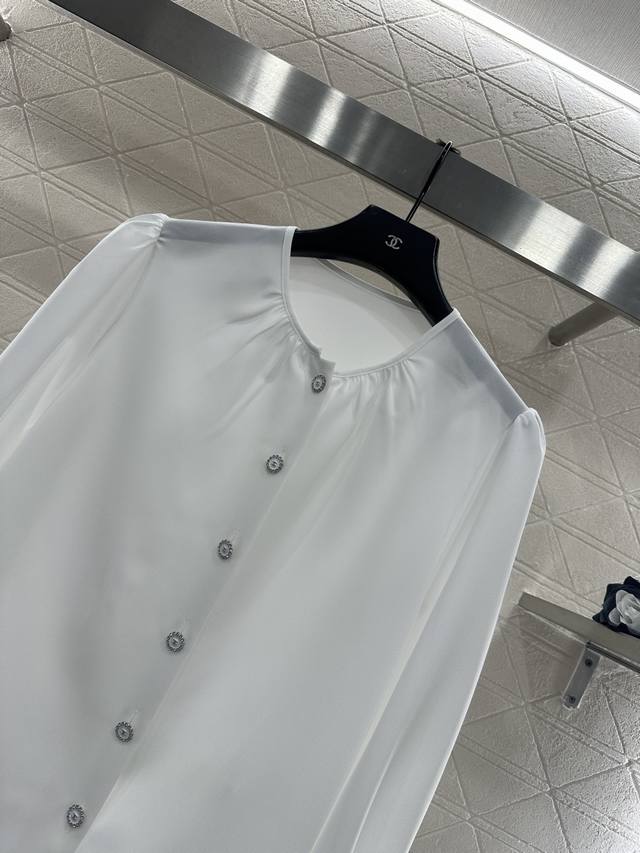 Chane*2026 New Arrival Ddd Round Neck Puff Sleeve Shirt Ddd Custom Yb Imported chiffon yarn, comfortable texture, smooth drape, button-down shirt, gathered cuffs on both sides, straight and loose fit, very forgiving, puff sleeves conceal arm flab, very unrestrictive on body shape, creating a relaxed and stylish look, double C logo buttons add a touch of sophistication and elevate the brand's style, suitable for commuting and dates, making the outfit more refreshing and high-end. Custom fabric and accessories, please look for the high-quality version, white, sizes 36, 38, 40 DDD