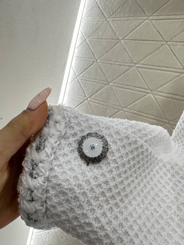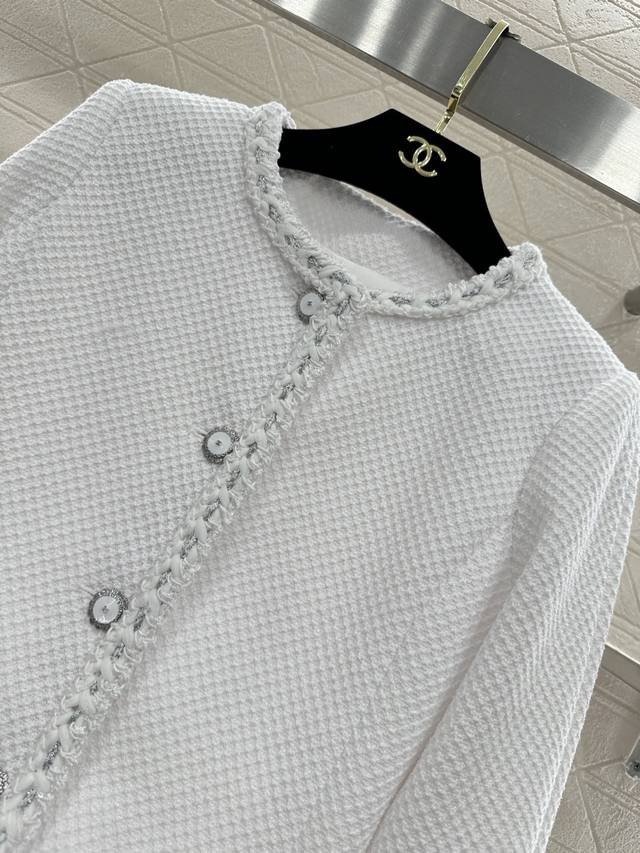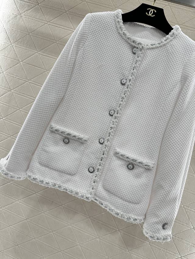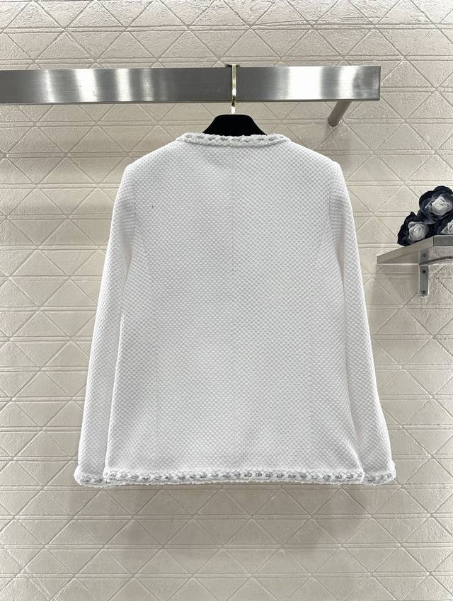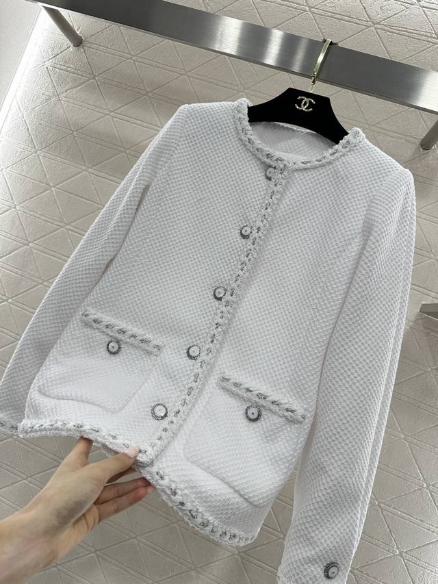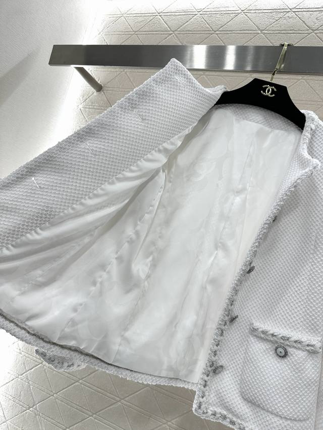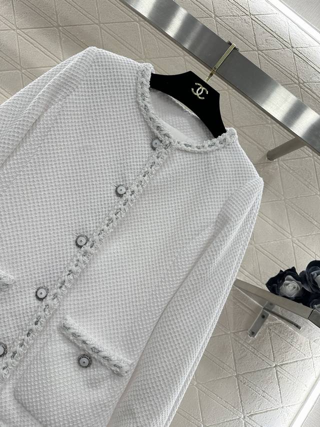 Chane*2026 New Arrival Ddd Round Neck Tie-edged Jacket Ddd Custom Yb Imported coarse wool fabric, high-quality texture, excellent appearance. Round neck dress jacket style, padded shoulders fit the body well, making you look slimmer and more upright. Classic black and white two colors interpret the ultimate elegance, three-dimensional diamond texture with frayed edge design, showing the craftsmanship in the details, and metal buttons are the finishing touch. White is fresh and gentle, black is calm and sophisticated. Whether paired with a dress or jeans, it can easily create a French socialite's exquisite atmosphere, with a gentle temperament. Custom fabric and accessories, look for the high version, two colors black and white 36 38 40 DDD