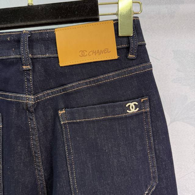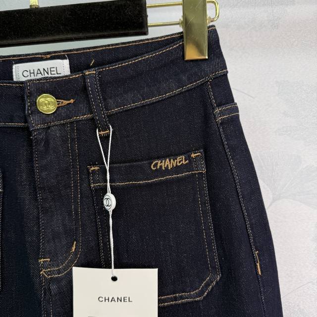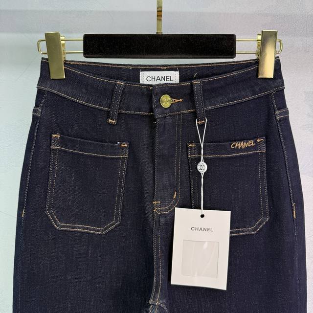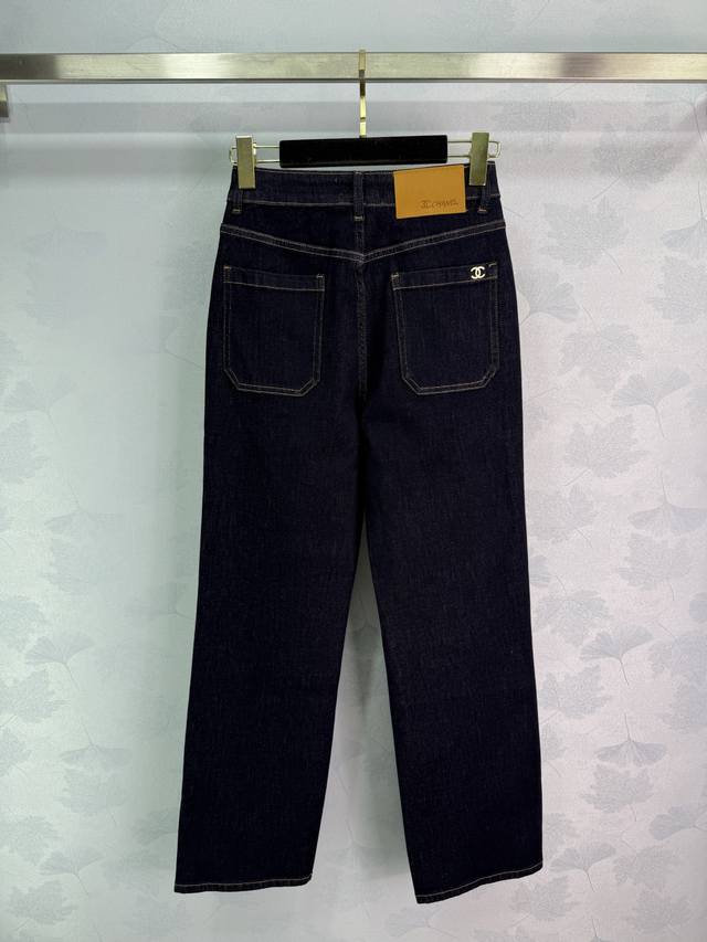 Chane*25 new early fall denim pants. High-waist design, front pocket embroidered logo, back logo embellishment. Stylish and lengthening. Straight-leg fit, suitable for all body types and all seasons. Exquisite details and workmanship complement any outfit! 1 color, 3 sizes. Sml T226B.