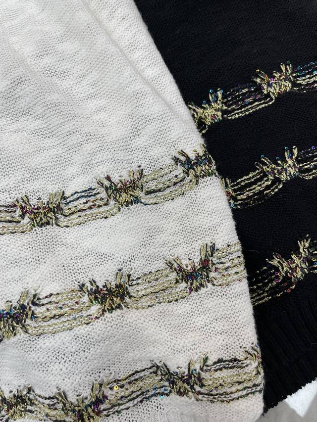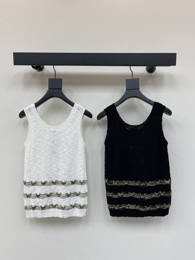 Chane*25 New style gold thread embroidery hem knitted vest custom made Yb cotton yarn weaving soft skin-friendly comfortable and stylish vest tailoring neckline adjustment appropriate skin-revealing texture thin and slightly transparent overall beautification head and shoulder ratio more slimming black and white optional matching hem gold thread embroidery presents triple contrast color retro style strong chest rhinestone double C logo decoration highlights taste slim elastic version highlights the figure wear elegant temperament easy to control daily travel or party Sml Aa