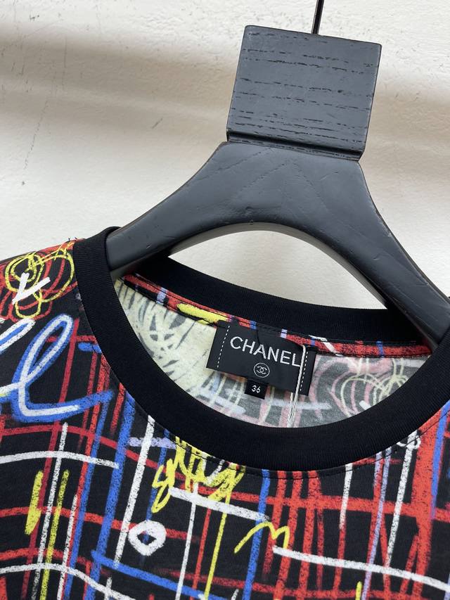 Chane*25's new early fall crew-neck, graffiti-print short-sleeved T-shirt. Custo