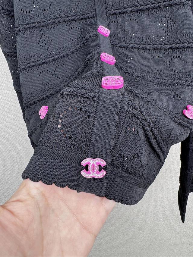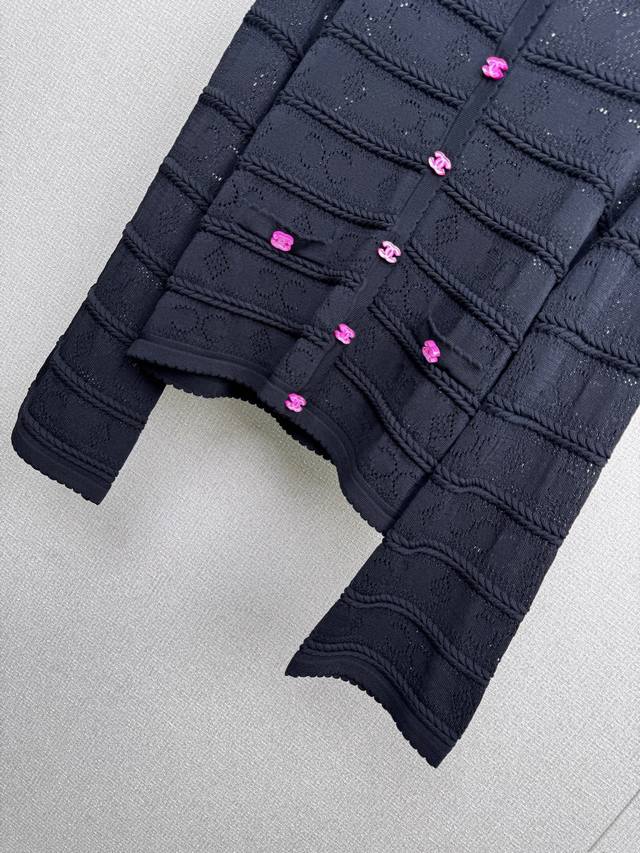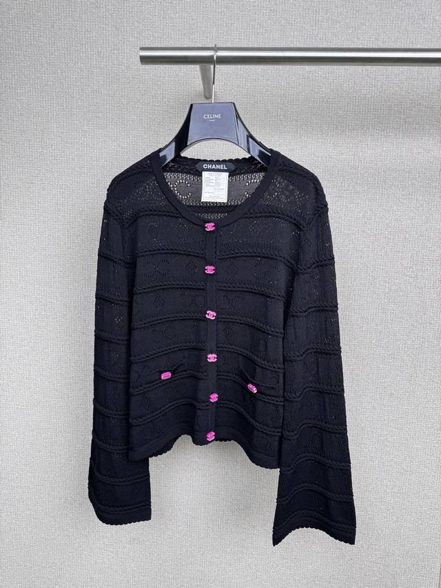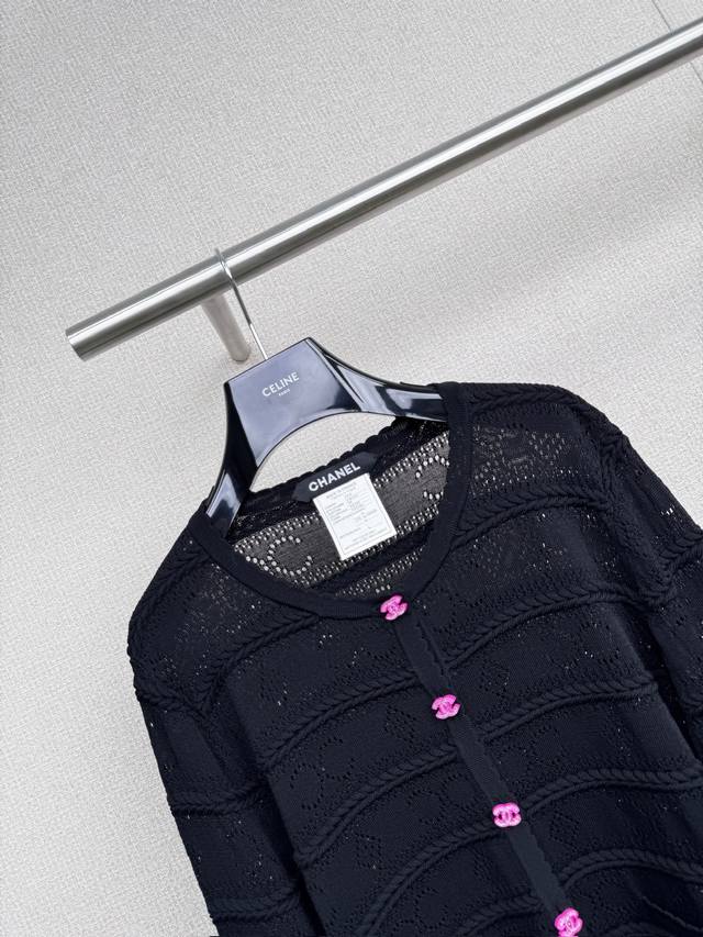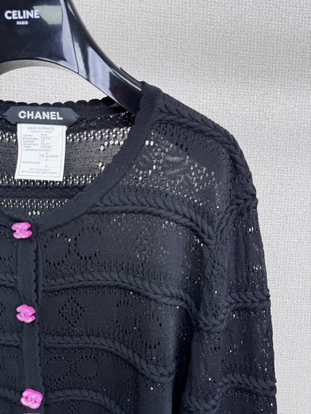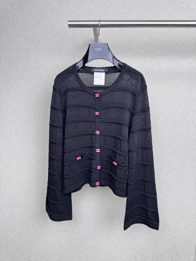 Chanel 2025 Autumn/Winter new vintage style, fashionable and sexy hollow crochet knitted cardigan. Buttoned, round-neck, long-sleeved cardigan top with a soft and delicate feel. The super beautiful lake blue color is particularly eye-catching. The hollow crochet design adds elegance and a slightly sexy perspective effect, which hides the flesh and is fashionable. Every stitch of this cardigan hides the patience of the craftsman. The structured jacquard is a heavy hollow three-dimensional knit with multiple textures superimposed. The time required for a single piece is twice that of ordinary knitting. The concave and convex three-dimensional hollow pattern is as delicate as a work of art. Wearing it will instantly give you a "low-key scarcity" feeling, which is ecstatic for the niche party. It has the soft warmth of wool and the breathability of cotton. It is comfortable to wear alone in the cool early autumn. It is not bloated when layered in late autumn. It is bony but not prickly. Wearing it next to the body feels like being wrapped in clouds. Size Sml