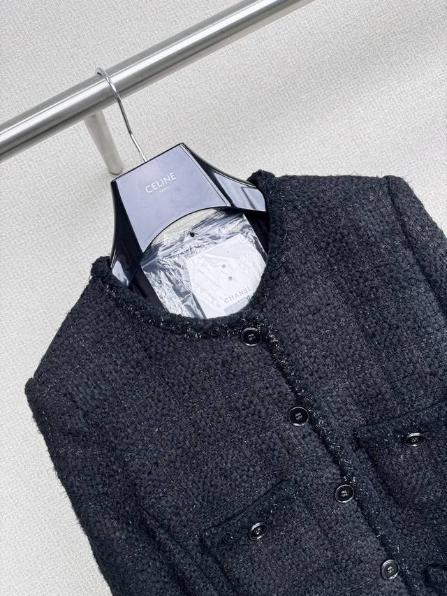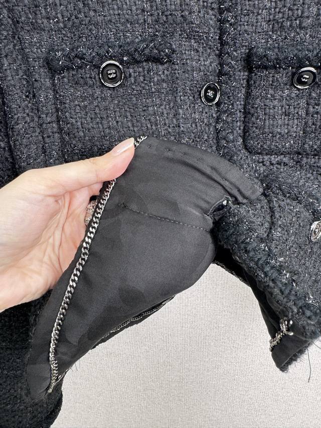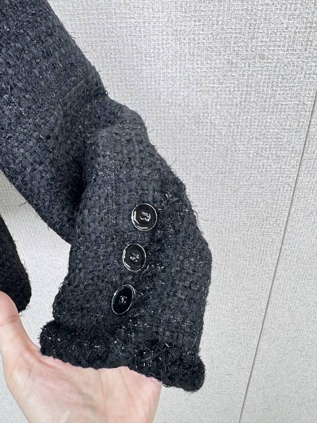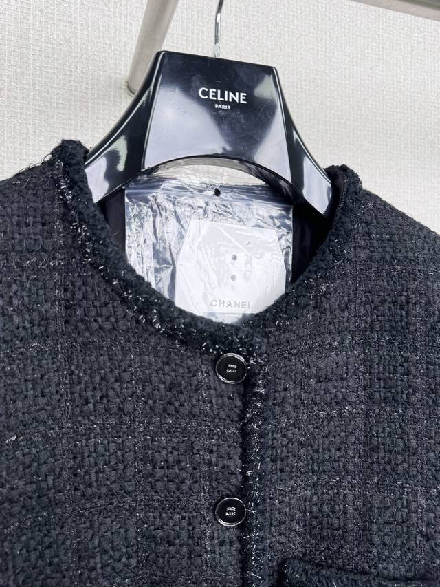 Chanel 2025 Fall/Winter Black Tweed Jacket. Every woman needs a black Chanel jacket! The fabric is incredibly luxurious; the tweed material exudes sophistication and elegance. The classic black color carries a mysterious and profound aura, as if hiding countless stories. The exquisite cut and perfect fit perfectly accentuate the figure, showcasing the unique charm of a mature woman. Every detail is handled just right, highlighting understated luxury. Styling is effortless; simple black heels are enough to create a powerful presence. Add a chic clutch to instantly elevate the style and sophistication. Wearing this black Chanel-style jacket, you'll be a mysterious and elegant queen, radiating irresistible charm with every gesture . Whether attending a formal occasion or enjoying afternoon tea with your best friends, you'll be the center of attention . Sizes: S, M, D, D