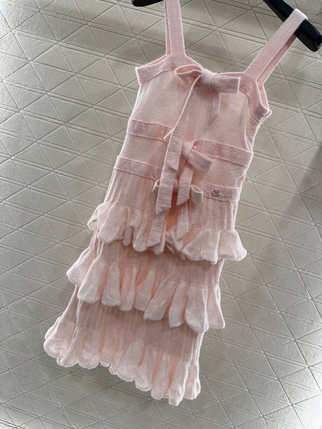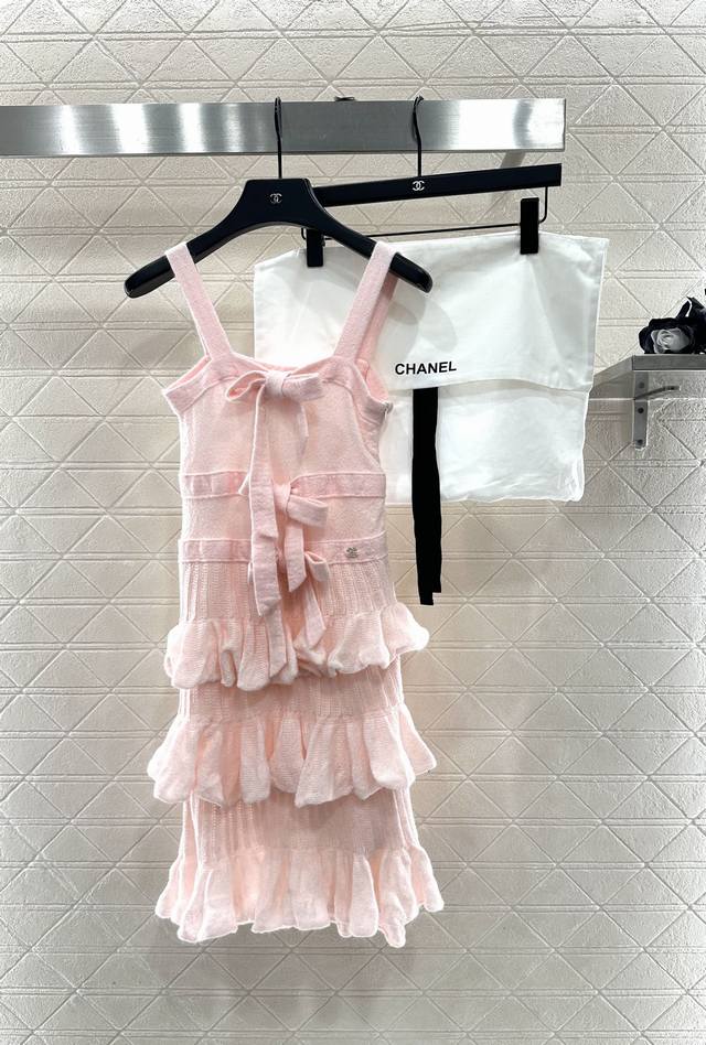 Chanel 2025 New Arrival Layered Cake Bow Knitted Slip Dress Custom Yb Imported S