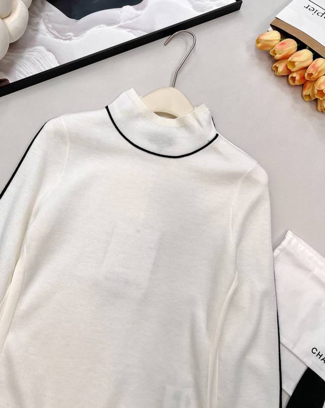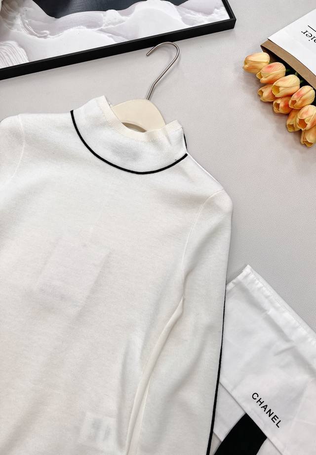 Chanel 2025 New High-Neck Knit Pullover Sweater, 25Coco Ski Collection# Crafted with custom Yb wool yarn , the texture is delicate and comfortable to wear. The high-neck pullover sweater design features elastic ribbed trim that narrows the neckline. The collar, shoulders, and cuffs are separated by different colored dividing lines, creating a color-blocked effect. The hem is decorated with a double C logo. The overall look is sophisticated yet casual, creating a stylish contrast. It's warm and comfortable to wear as an inner layer and chic and fashionable as an outer layer. Comes with a delicate drawstring dust bag. Custom fabrics and accessories are included. Please ensure the version has all three labels. Available in three colors. Sizes: S, M, L, DDD. Code: H, DDD.