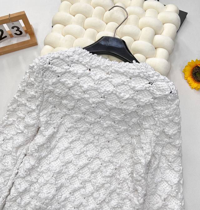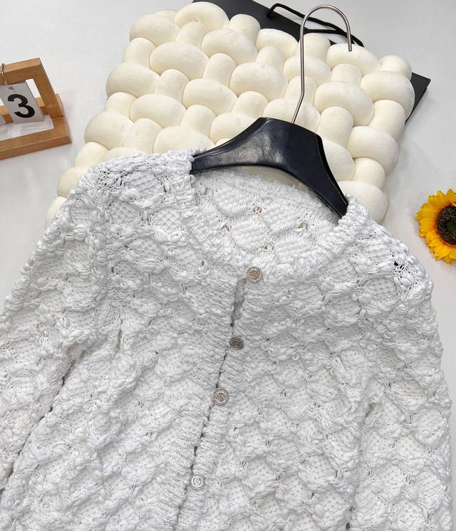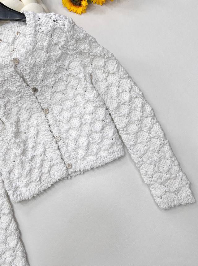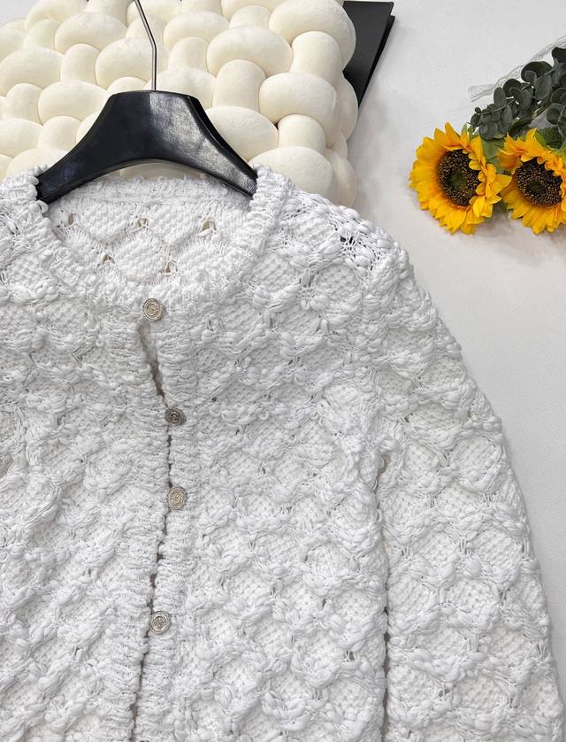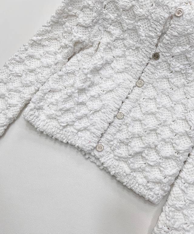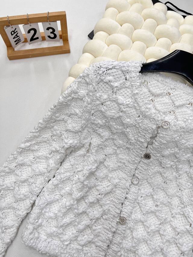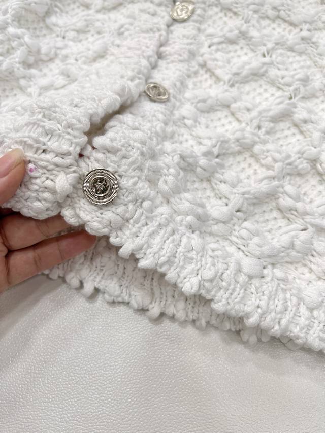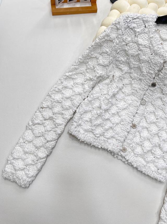 Chanel 25Ss Spring New Arrival Tweed Diamond Quilted Openwork Knit Cardigan Short Jacket is absolutely stunning! The creamy white color has a gentle filter, making anyone who wears it a sweet fairy~ DDD The classic diamond quilting element, paired with exquisite openwork craftsmanship, has both the brand's elegant heritage and a touch of lively playfulness. The tweed fabric is full of texture, and the delicate texture shows a high-end style. DDD The short design is super thoughtful, perfectly raising the waistline and easily creating the illusion of long legs. The single-breasted embellishment shows exquisite details. Whether paired with a camisole and a short skirt, or with a simple white T-shirt and jeans, it can easily achieve a fashionable look, 100% eye-catching on the street. Fashionistas, grab it without hesitation! All tags are complete! DDD Sizes S, M, L DDD