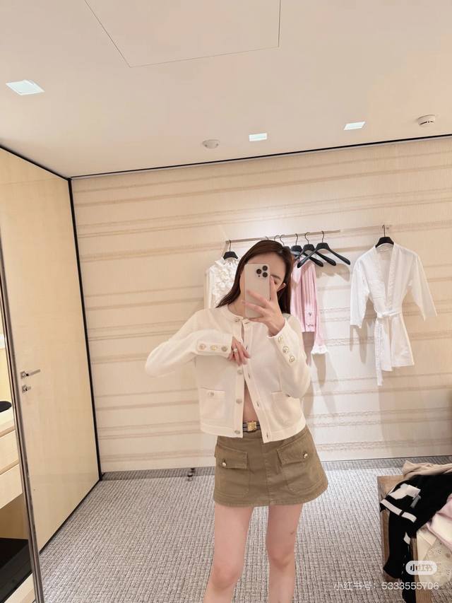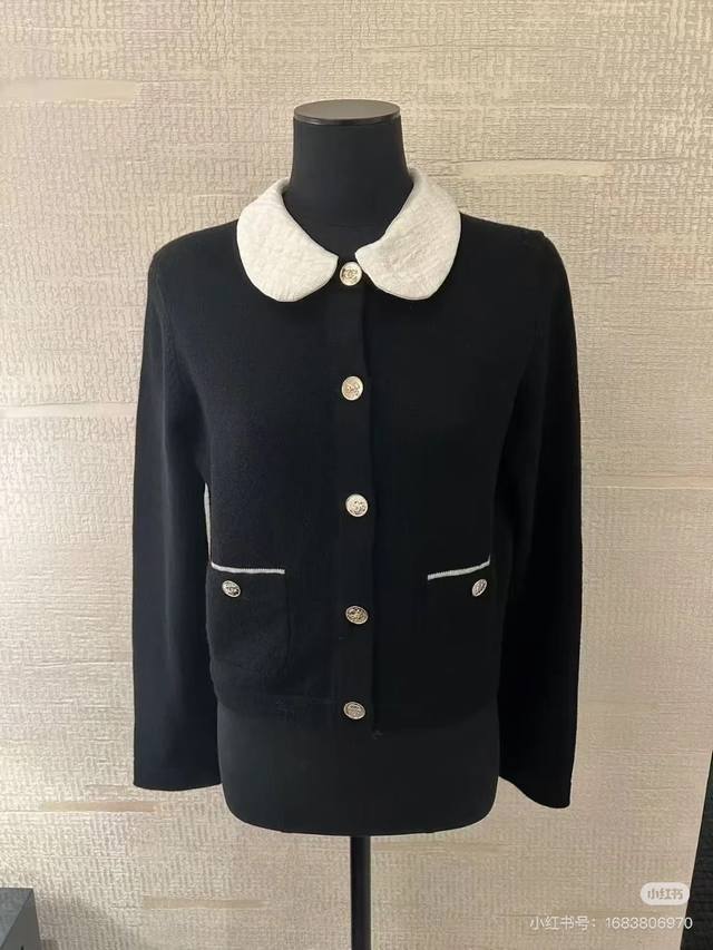 Chanel* New High-End Custom 100% Wool Yarn Fabric, Soft and Skin-Friendly! Stylish and Youthful, Detachable Peter Pan Collar Design, Customized Multiple Buttons, Short-Sleeve and Long-Sleeve Knit Cardigan Top! Available in Off-White, Pink, Black, Sizes 36, 38, 40. Size 38: Shoulder Width 37cm, Bust 88cm, Sleeve Length 60cm, Length 49cm. (