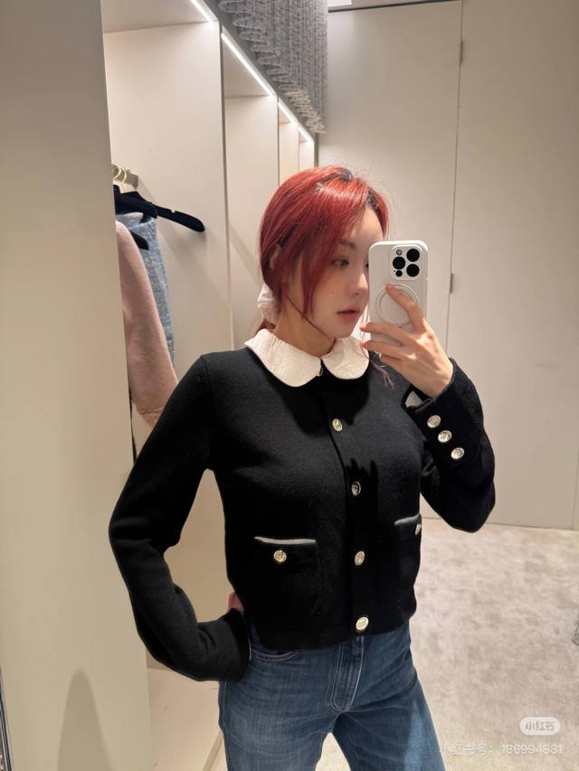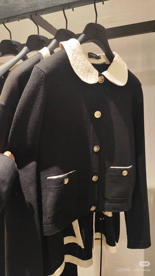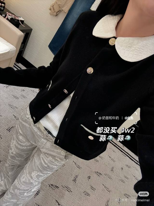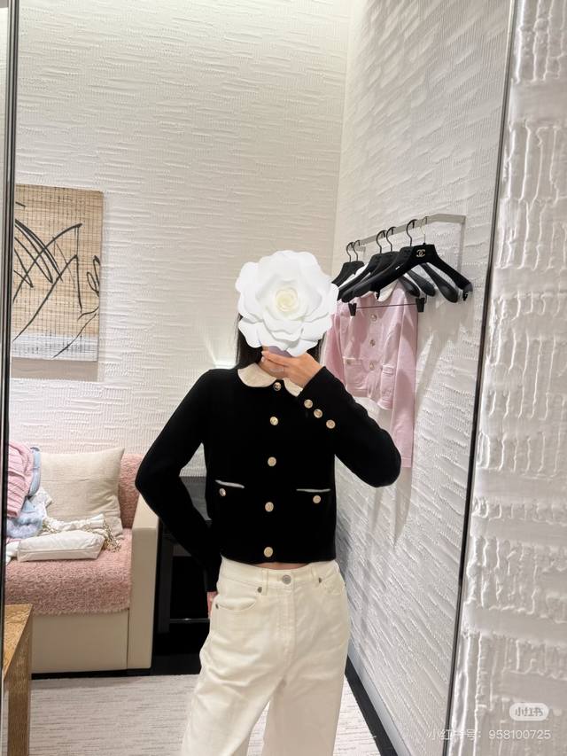Chanel* New High-End Custom 100% Wool Yarn Fabric, Soft and Skin-Friendly! Stylish and Youthful, Detachable Peter Pan Collar Design, Custom Multiple Buttons, Short-Sleeve and Long-Sleeve Knit Cardigan Top! Available in Off-White, Pink, Black, Sizes 36, 38, 40. Size 38: Shoulder Width 37cm, Bust 88cm, Sleeve Length 60cm, Length 49cm. (
