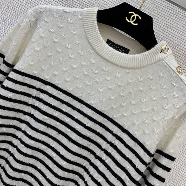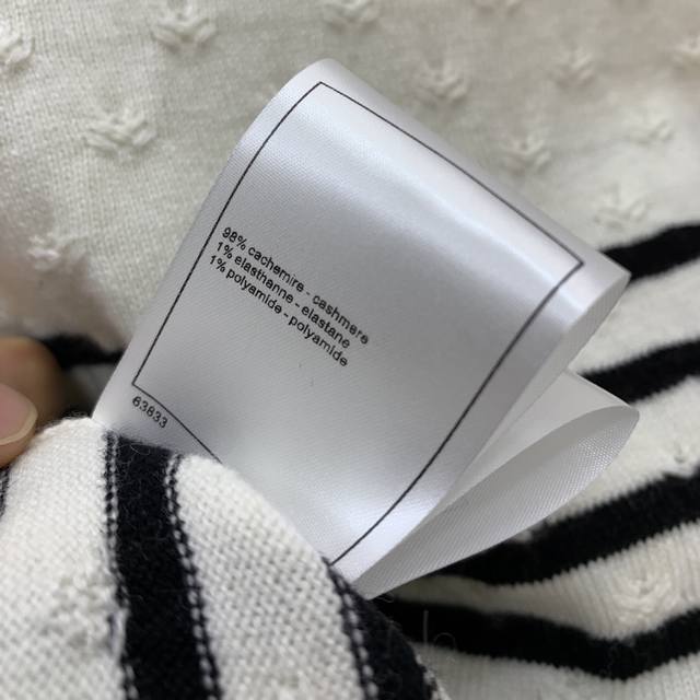 Chanel* New High-End Custom Cashmere Blend Yarn Fabric, One-Shoulder Button-Down Cable Knit Pullover Long-Sleeve Sweater! Black, Beige, Sizes 36-38-40. Size 38: Shoulder Width 39cm, Bust 90cm, Sleeve Length 62cm, Length 57cm.
