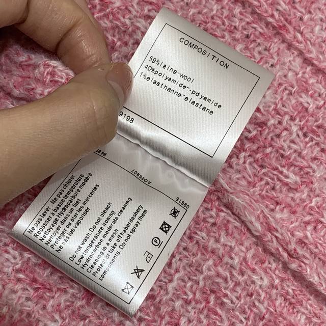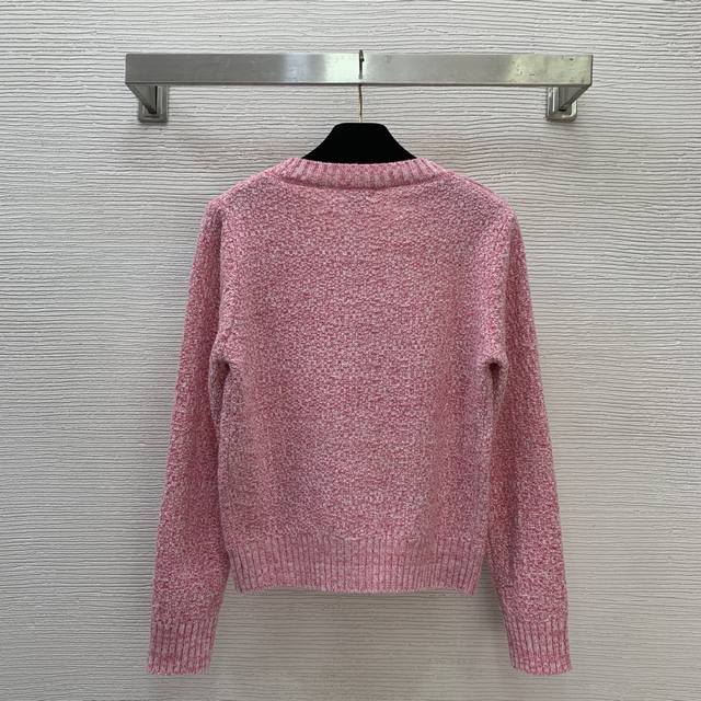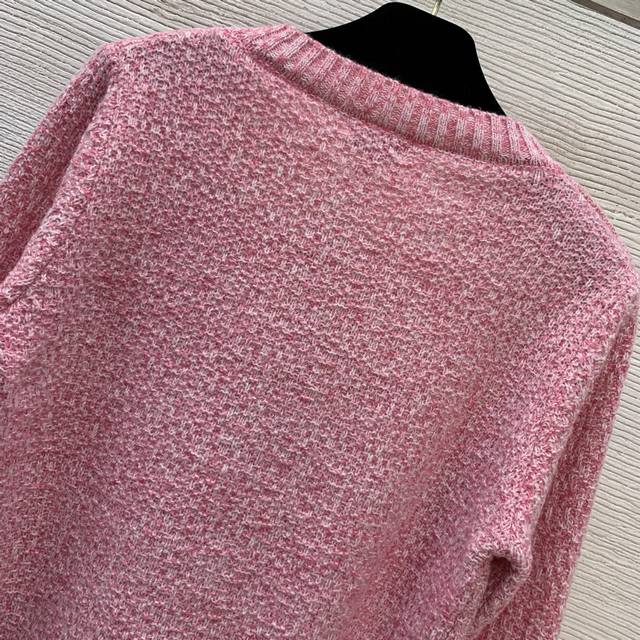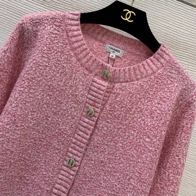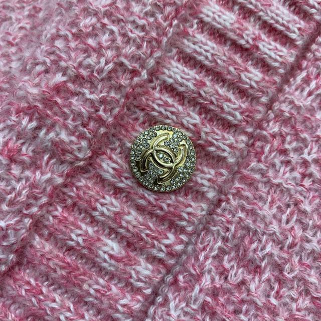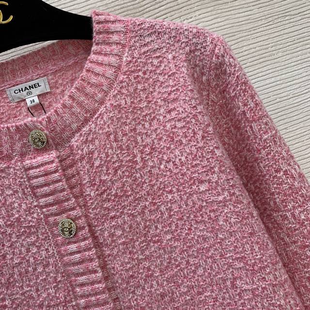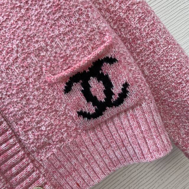 Chane*L New High-End Custom Wool Blend Yarn Fabric, Turn-Up Edge Design, Double C Logo, Button-Down Placket, Round Neck, Long Sleeve Knit Cardigan Top! Pink, Sizes 36-38-40. Size 38: Shoulder Width 36cm, Bust 92cm, Sleeve Length 58cm, Length 52cm. (DDD)