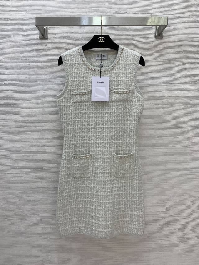 / Chane*L New Silver Blend Slim Fit Round Neck Sleeveless Knitted Vest Dress ! Sil