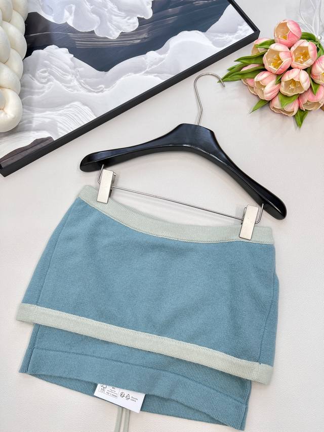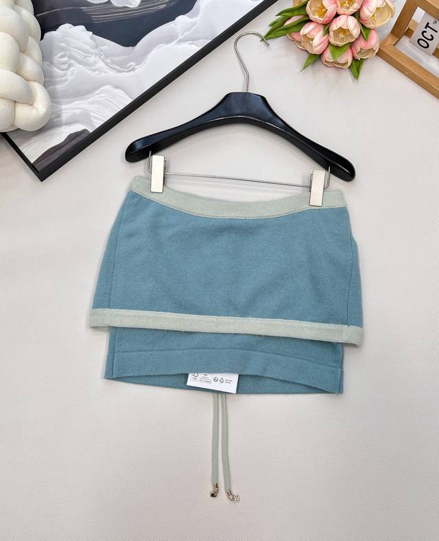Chanel2025 new lace-up contrasting knitted tube top, customized Yb cashmere yarn