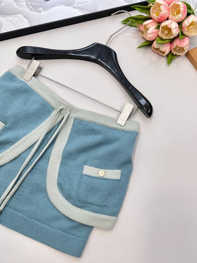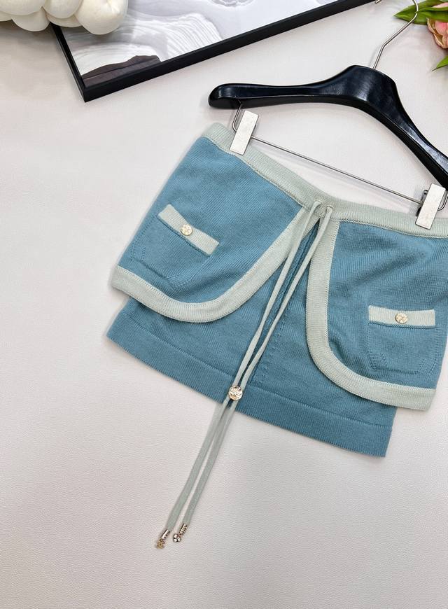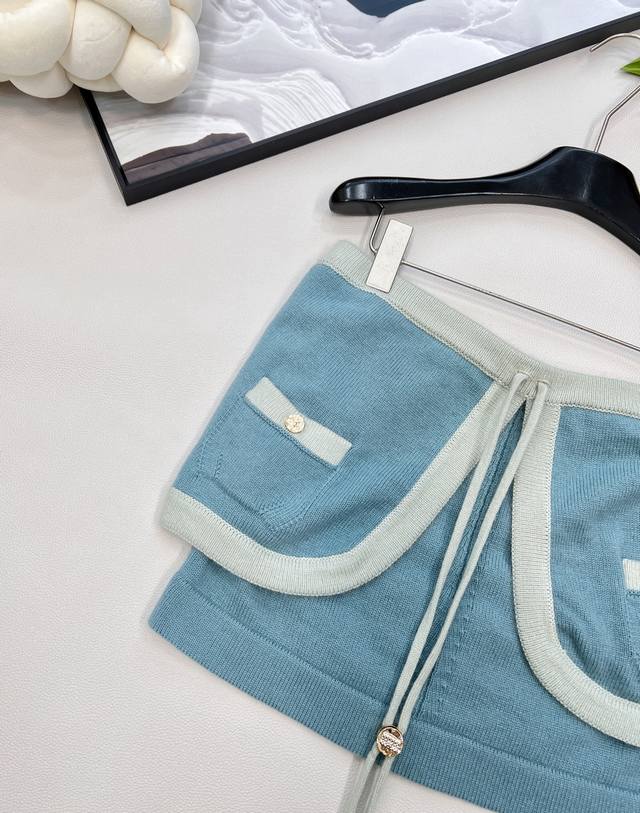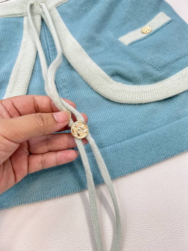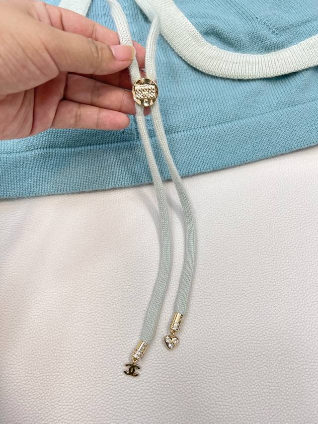 Chanel2025 new lace-up contrasting knitted tube top, customized Yb cashmere yarn weaving texture, high-grade, comfortable and soft, flat knitted open-front tube top tailoring, fine crochet texture pattern throughout the body, large body with contrasting color threaded edging, elegant and lazy, rhinestone buckle lace-up bow decoration on the chest, easily highlighting the perfect score, texture, double C rhinestone buckle embellishment, exquisite and stylish, suitable for layering and mixing, can be elegant and hot, fashionable and casual, customized surface and accessories, with dust bag, three labels complete, four colors