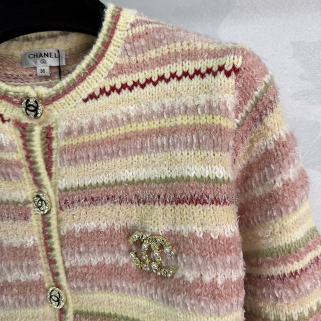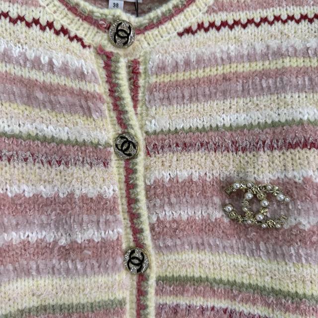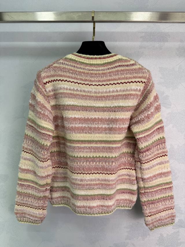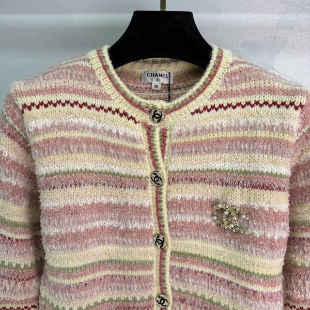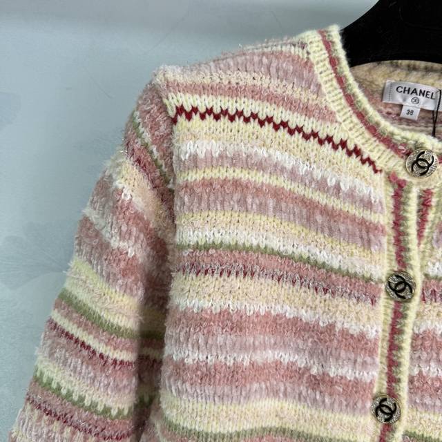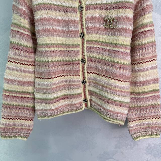 Chanel*25 Early Autumn New Round Neck Cardigan, Color Block Classic Stripes, Versatile, Slim Fit, Custom Hardware Logo, A Must-Have for Rich and Beautiful Women, French Elegance, High-Class Style! 1 Color, 3 Sizes S, M, L. T226B.
