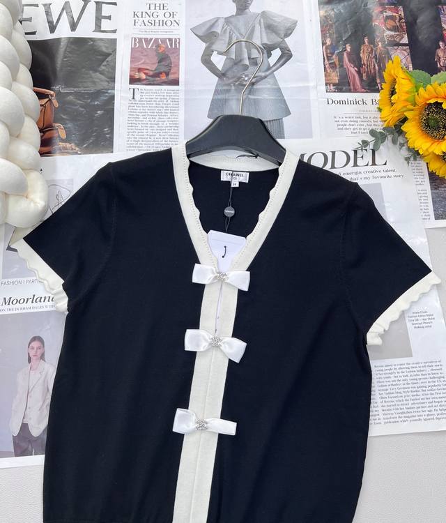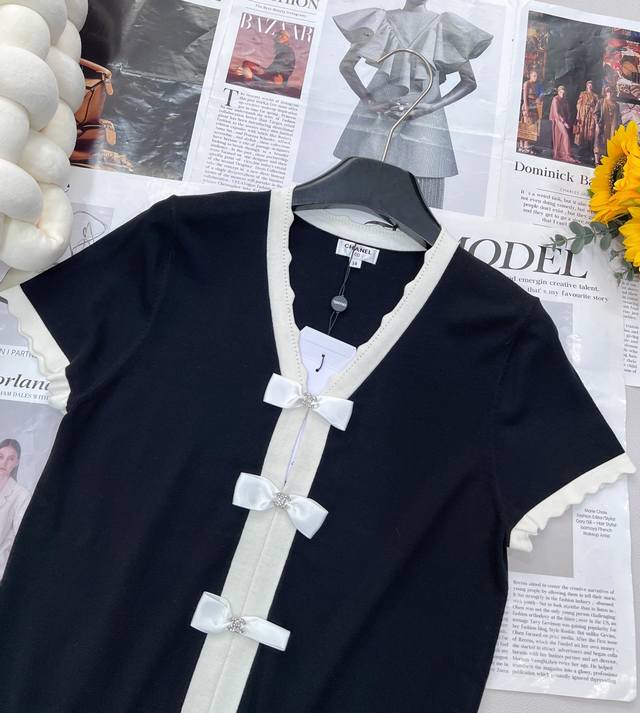 Chanel's new Chanel-style bow-knitted short-sleeves, weld elegance on the body