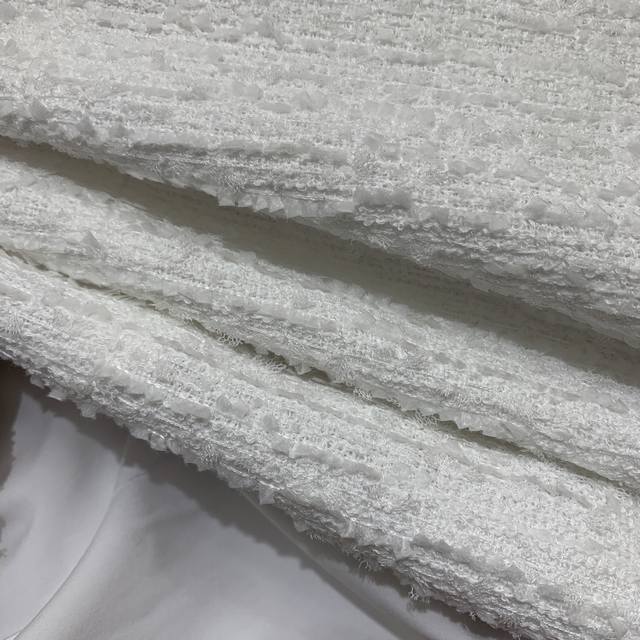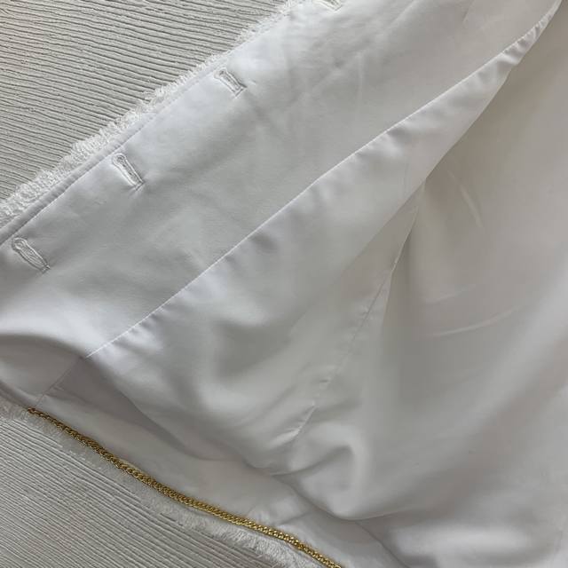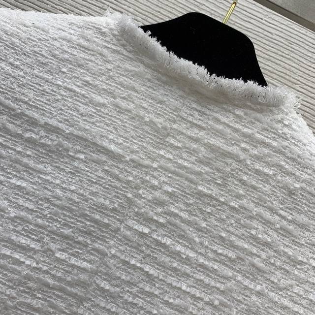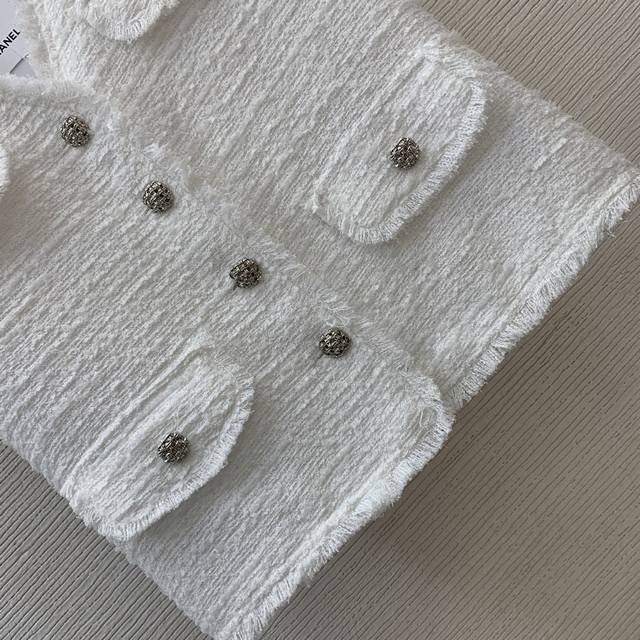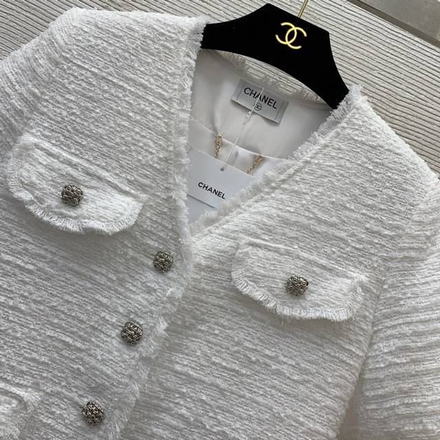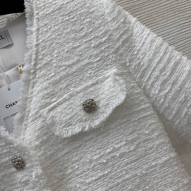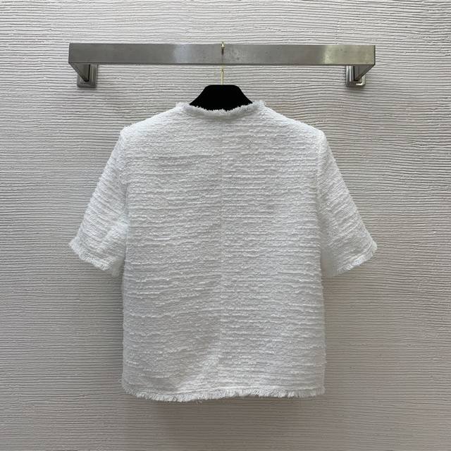 Chane*'s new high-end custom-made hem features a metal chain design for a sleek, Chanel-style tweed cropped V-neck short-sleeved top jacket! White, Size M: Shoulder 37, Chest 96, Sleeve 25, Length 53