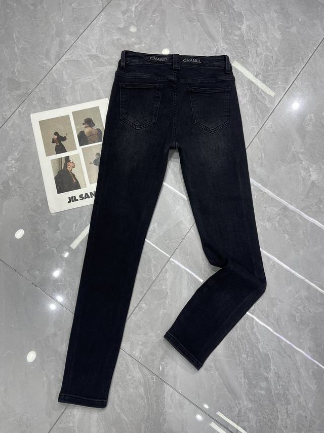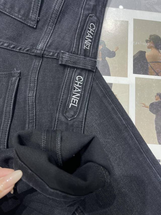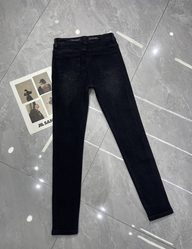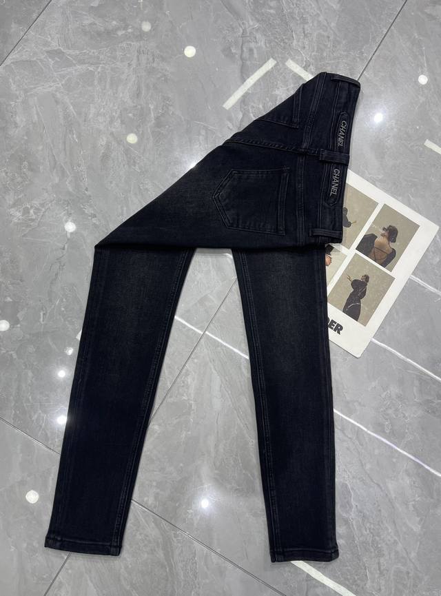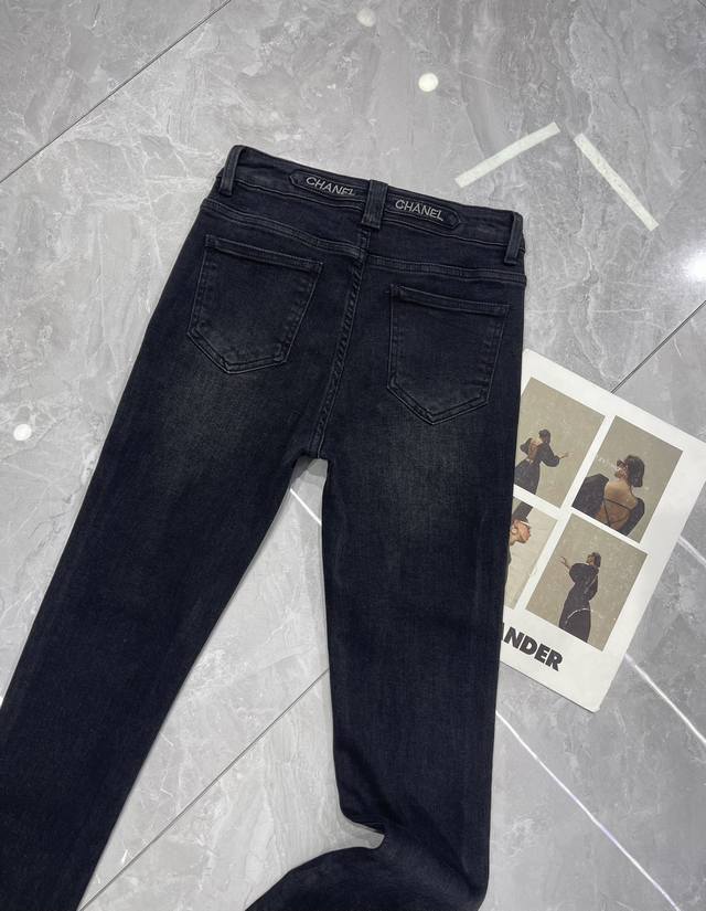 Detailed Photos Ddd Hot Selling Item!! Chane* New Four-Way Stretch Skinny Jeans, Slim Fit, High-Density Embroidered Logo, Stylish Smoky Gray with a High-Quality Texture, Imported Stretch Denim Cotton, Retro Washing Process, Round Pockets on the Back, Hemmed Legs, High Waist, Hip-Lifting and Slimming, Makes Legs Look 2 Meters Long, A Must-Have! Black 5ml XL DDD