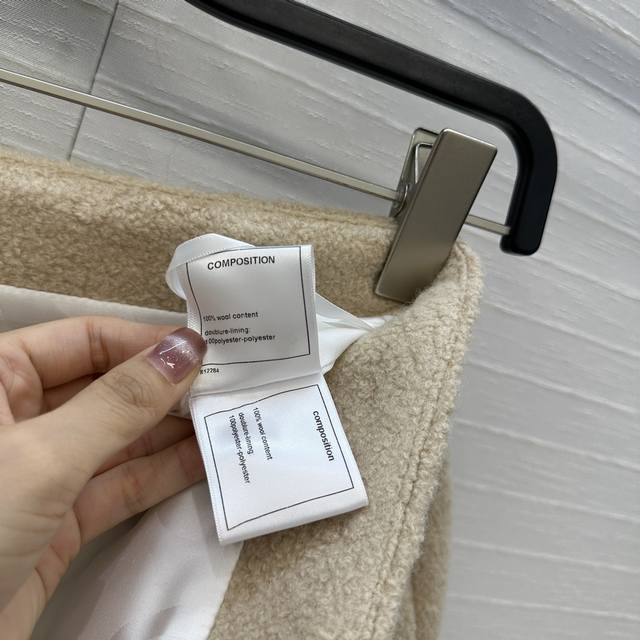 Exclusive First Look at Chane*25N New Arrival! Double-pocket wool mini skirt, single-breasted A-line silhouette that flatters the figure and creates a slimming effect, adorned with vintage-inspired delicate buttons. A versatile piece that blends French elegance with understated luxury, suitable for all body types. Camellia jacquard lining, 100% wool fabric, quality craftsmanship evident in the details. Available now in sizes 36-40. Size 36: Waist 79cm, Length 35cm. (DDD)