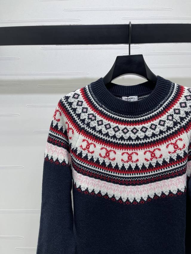 New Arrival! High-end original quality Chane* 2025 Autumn/Winter latest collection! Crochet crew neck pullover sweater, custom cashmere and wool knit material with a high-quality, comfortable and soft texture. The ribbed trim on the neckline and cuffs echoes the hem. The crochet pattern with Fair Isle Nordic style adds an artistic touch. The double C jacquard logo in the center highlights the brand's style. The cashmere knit fabric is warm and comfortable. Regular fit, simple and versatile for autumn and winter everyday wear! 1 color! Sizes SM-L3! High-quality bulk order A706B390C DDD