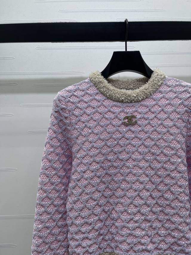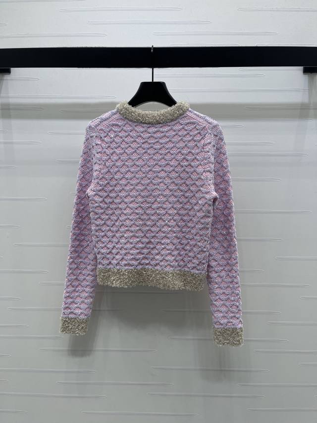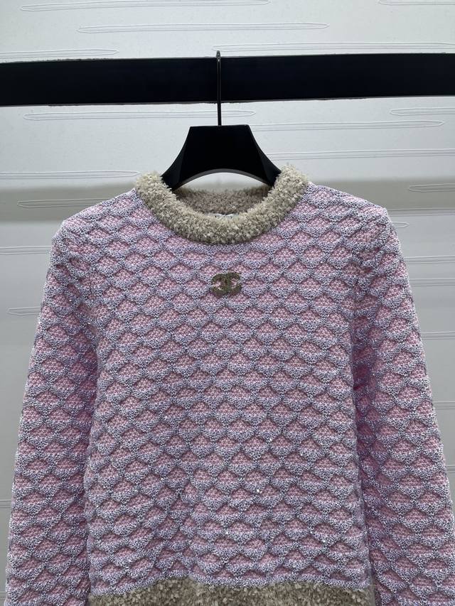 New Arrival! High-end original quality Chanel* 2026 Early Spring Collection! Color-blocked round neck knit long-sleeved sweater! Made with custom wool blend yarn, the texture is high-end, delicate, and comfortable. The all-over sequins outline the silhouette, and the shell-shaped pattern design showcases the brand's unique style. High-end and fashionable, it features custom hardware with rhinestones and a double C micro-logo on the chest. The overall style is understated yet sophisticated. Suitable for casual, fashionable, commuting, and everyday outings! 3 colors! Sizes SM-L3! High-quality bulk order A706B340C DDD