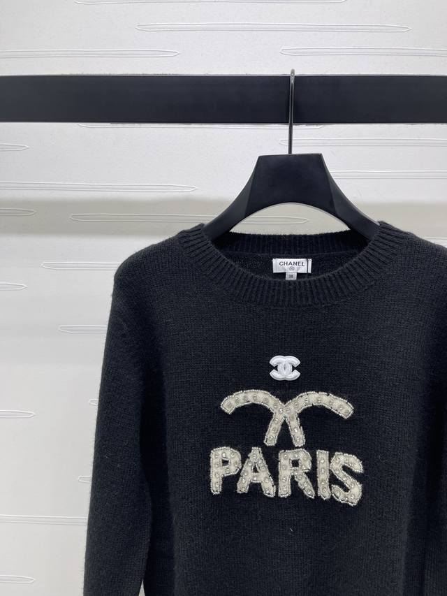New Arrival! High-Quality Original Chane* 2025 Autumn/Winter Collection! Double C Embroidered Knit Sweater! Custom imported wool knit material, soft and comfortable. The entire garment is edged with elastic ribbed trim for a snug fit and added dimension. The rhinestone logo on the chest highlights the brand's style. The round neck pullover sweater adds a touch of Korean gentleness and artistic flair, perfect for layering in autumn and winter! 2 colors! Sizes SM-L3! High-quality bulk order A706B410C DDD