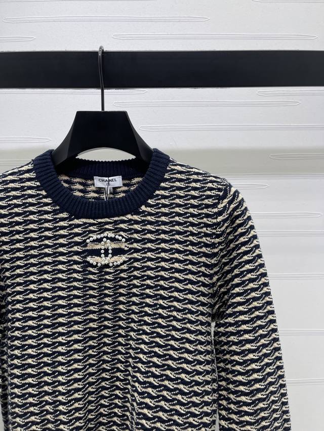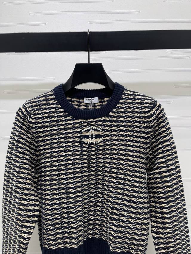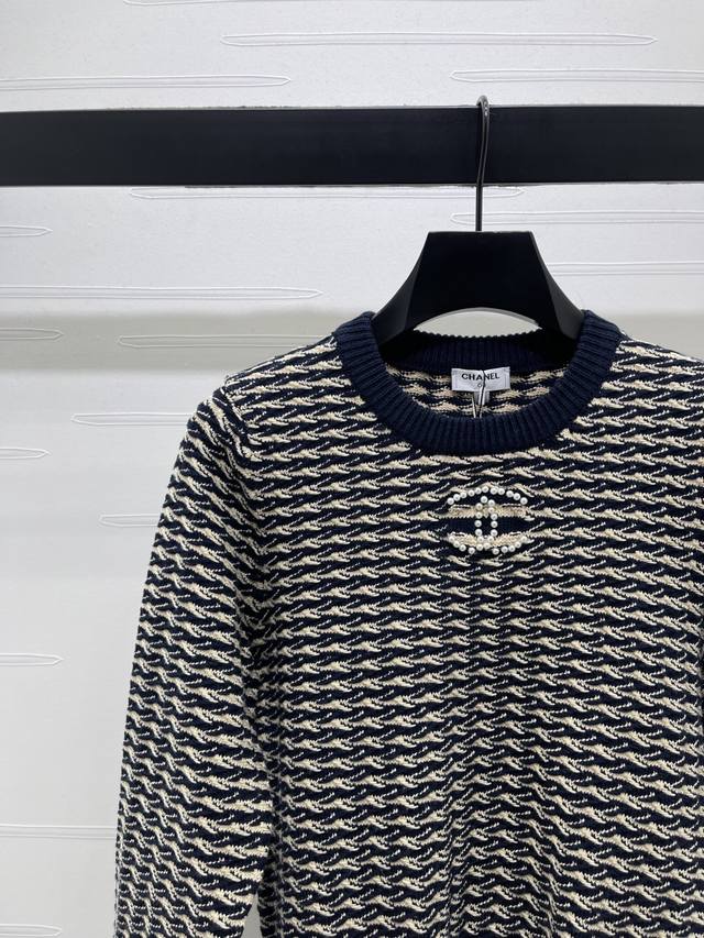 New Arrival! High-Quality Original Chane* 2025 Autumn/Winter Collection! Striped Long-Sleeve Pullover Sweater! Custom-made wool knit material with superior texture. Round neck, long-sleeved top with a generous cut. The contrasting stripes throughout create a sophisticated and flattering silhouette, resulting in a slimming effect. The overall design exudes elegance. The pearl-embellished logo on the chest adds a stylish touch to this versatile autumn/winter piece. A must-have for a sophisticated and elegant autumn/winter look! Available in 2 colors! Sizes SM-L3! High-quality bulk order A706B300C DDD