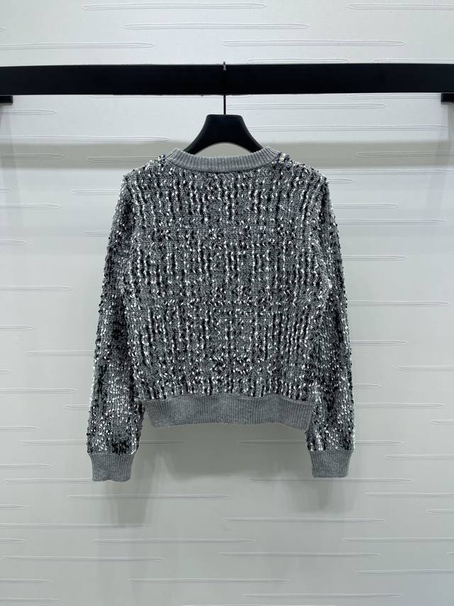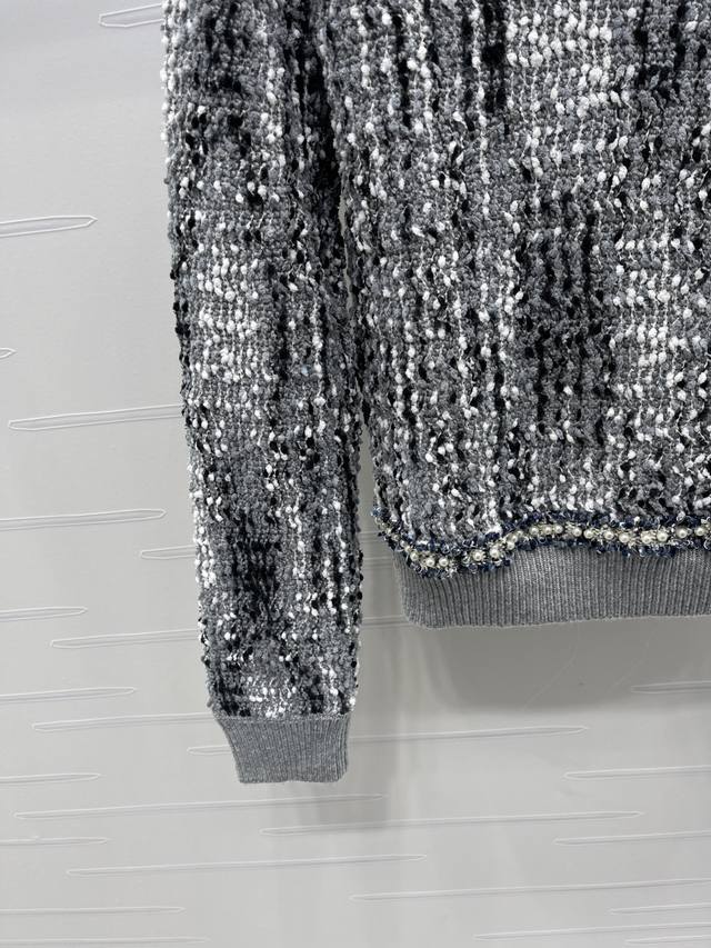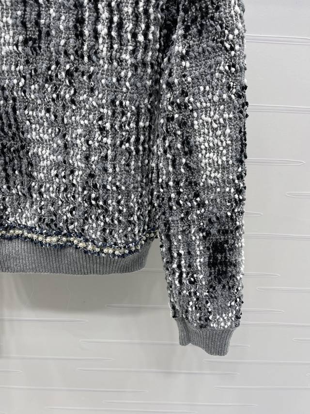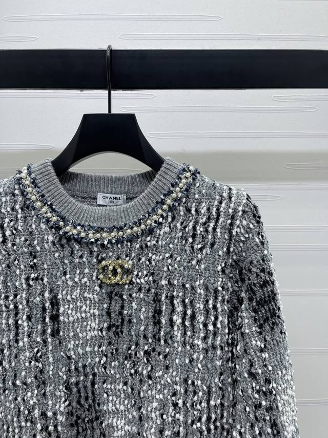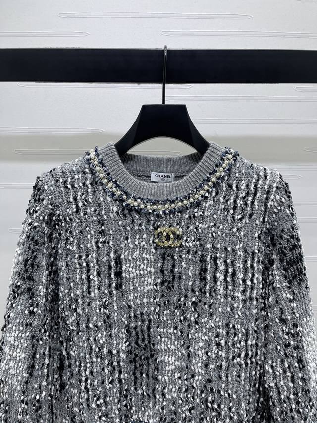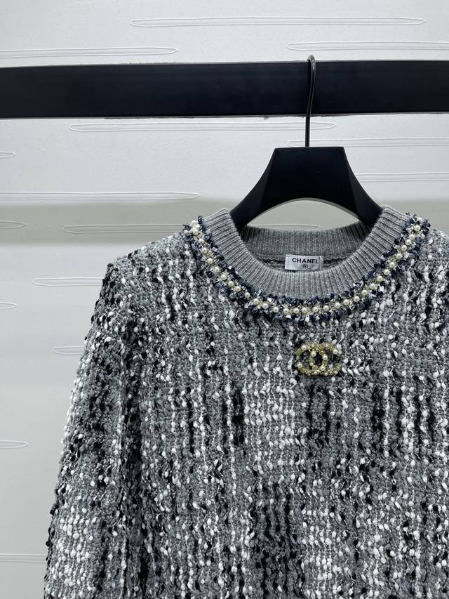 New Arrival! High-Quality Original Chane* 2025 Early Autumn Collection! Crew Neck Pearl Long-Sleeve Sweater! Made with custom wool blend yarn, soft, skin-friendly, comfortable, and stylish. The yarn is custom-dyed for a crew neck and long sleeves. The adjustable neckline flatters the figure , enhancing the head and shoulder proportions for a slimmer look. Multi-colored granules throughout create a strong retro style. The pearl details extend from the neckline to the hem, adding a touch of elegance and sophistication. The stretchy fit is forgiving, youthful, and flattering. Perfect for everyday wear or parties! 1 color! Sizes SM-L3! High-quality bulk order.