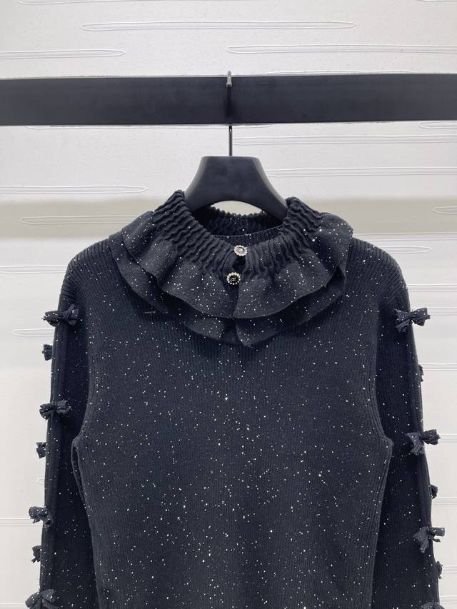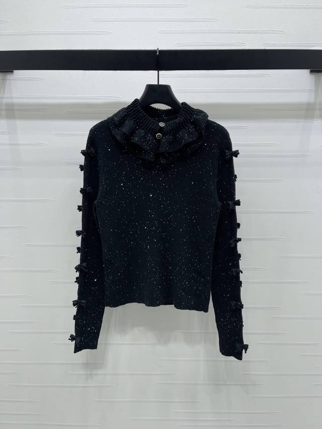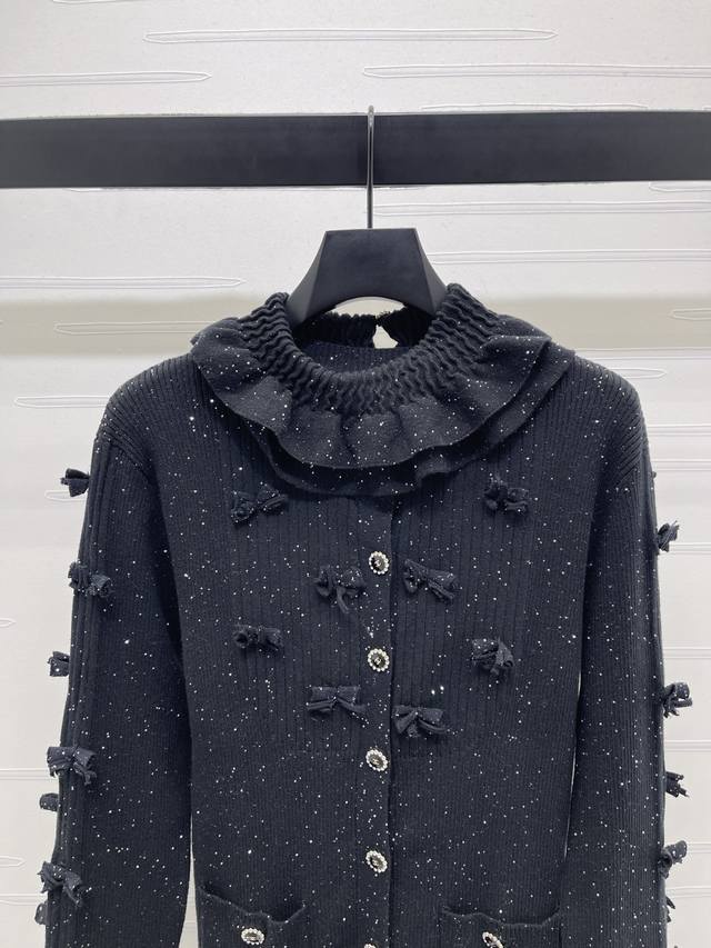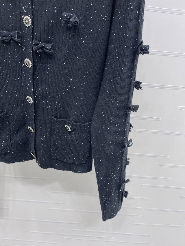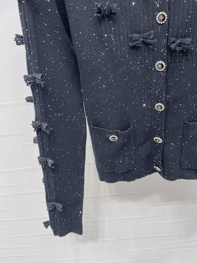New Arrival: High-Quality Original Chanel* 2025 Autumn/Winter Collection! All-over silver bow knit cardigan! Custom-made, hand-woven bow embellished with starry night details, elegant and sophisticated. Single-breasted design with delicate buttons, exquisite details on cuffs and neckline, creating a layered look. Soft and comfortable knit fabric, perfect for autumn and winter. Pairs well with skirts or casual pants, easy to wear for commuting or dates. Classic Chanel-inspired design, simple and elegant, combining style and practicality, a must-have for fashionable girls! 1 color! Sizes SM-L3! High-quality bulk order A706B600C DDD