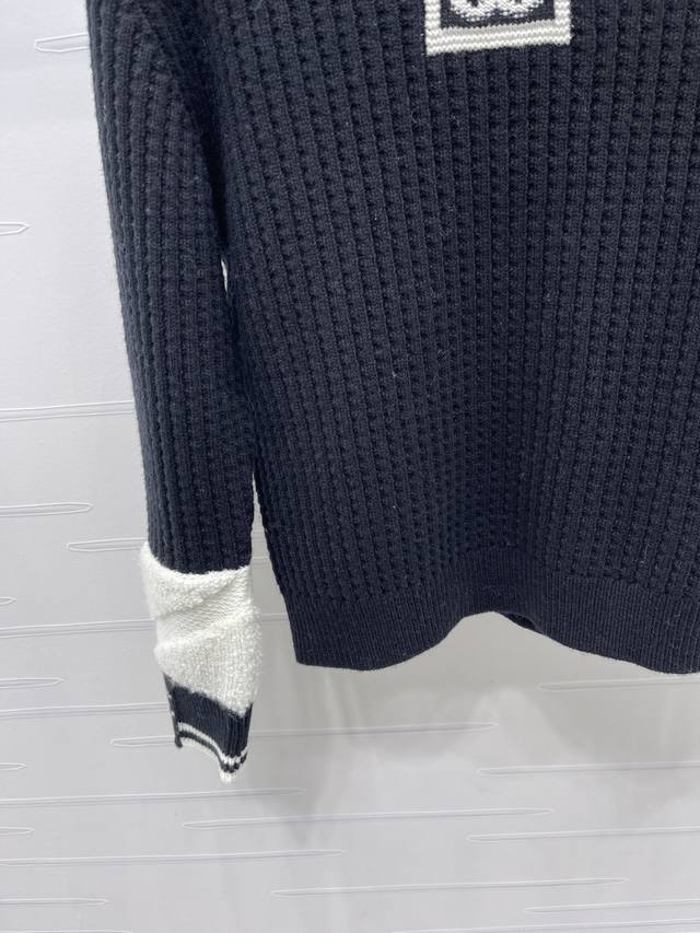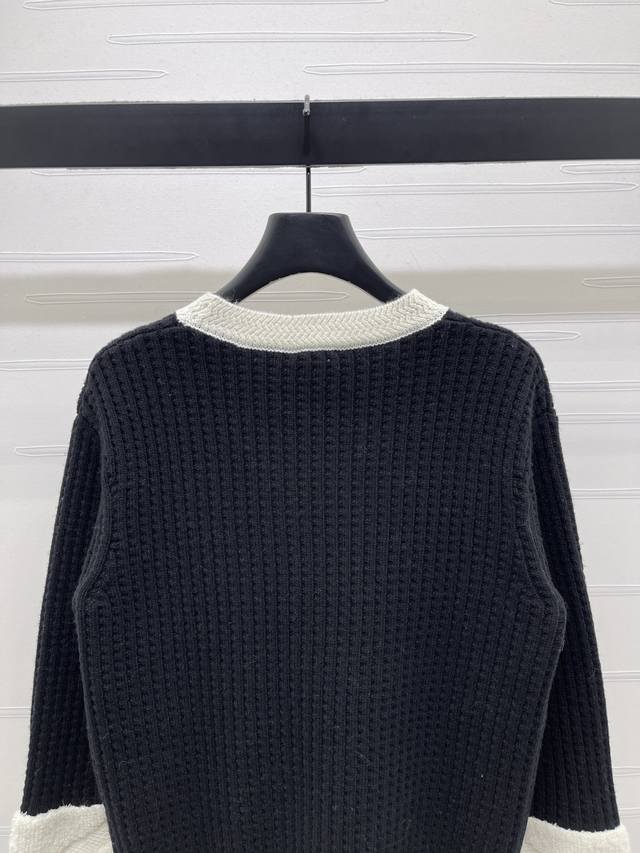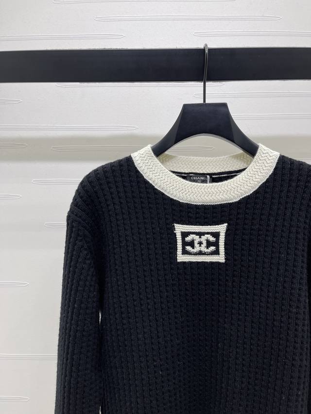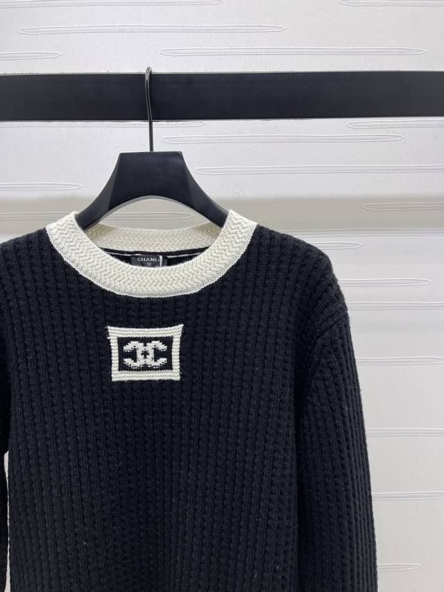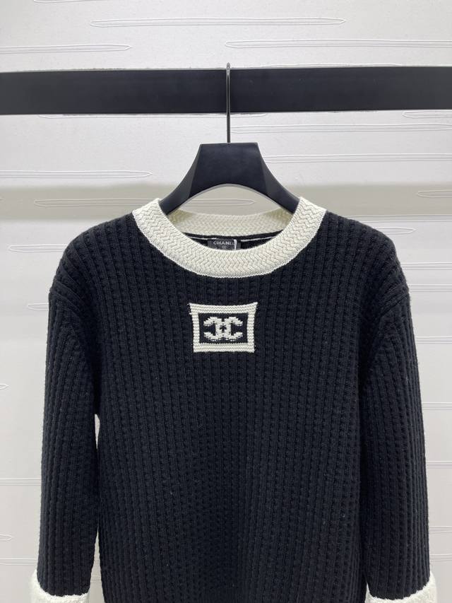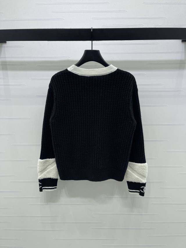New Arrival! High-quality original Chanel* 2025 Autumn/Winter collection! Black and white pullover knit long-sleeved sweater! Crafted from custom wool yarn, it boasts a premium feel, is incredibly soft and comfortable. Features a round neck pullover cut, a delicate waffle texture on the body, ribbed trim throughout, contrasting colors on the neckline and sleeves, and a logo logo on the cuffs that echoes the double C on the chest, effortlessly highlighting exquisite details and a sophisticated, stylish look. Versatile and with a relaxed, flattering silhouette, it's forgiving and effortlessly chic! Available in 2 colors! Sizes SM-L3! High-quality bulk order A706B410C DDD