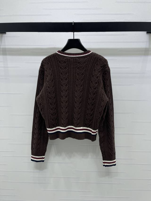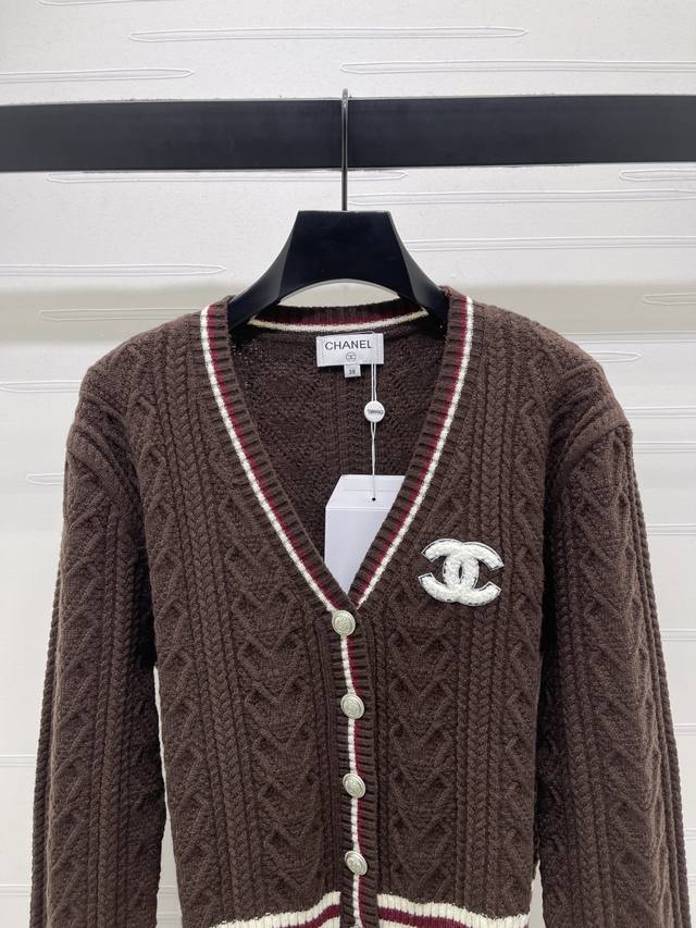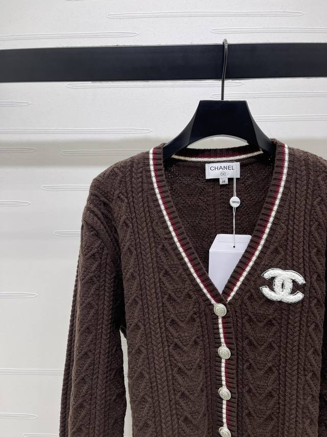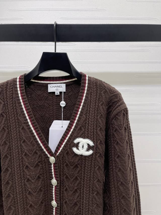 New Arrival! High-Quality Original Chanel* 2025 Autumn/Winter Collection! Cable Knit V-Neck Long-Sleeve Cardigan! Made with custom wool blend yarn, the cardigan is comfortable and soft. The entire design features a vertical cable knit pattern with contrasting stripes on the neckline, cuffs, and hem, adding a sense of style. The iconic embroidered logo adorns the chest, showcasing the brand's identity. Effortlessly stylish and perfect for a preppy look! Available in 3 colors! Sizes SM-L3! High-quality bulk order A706B380C DDD