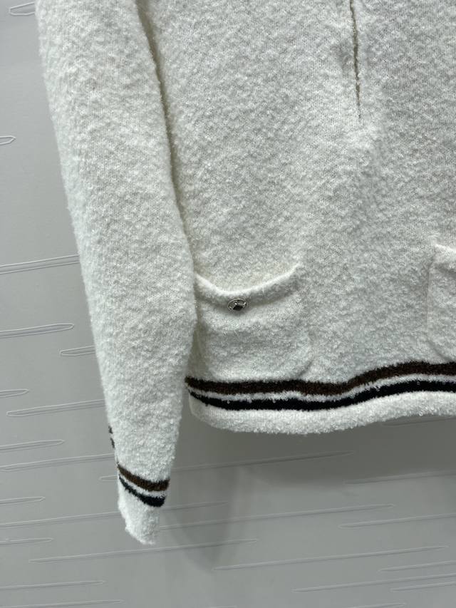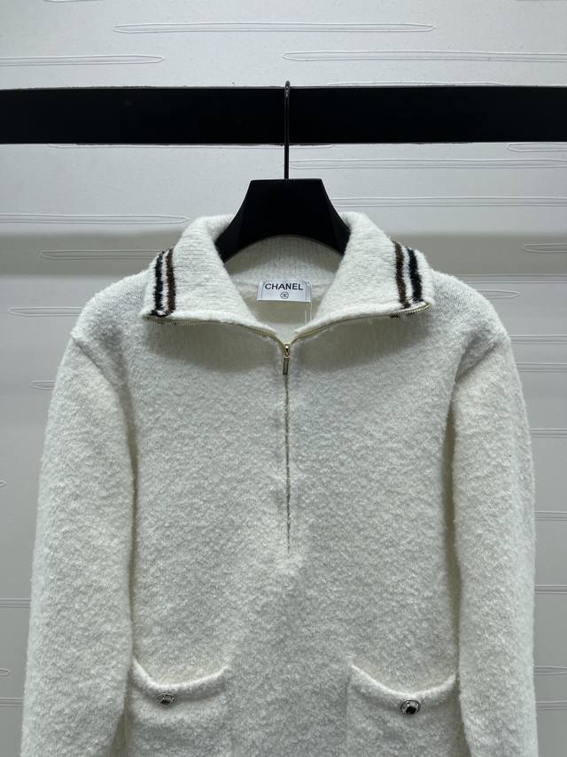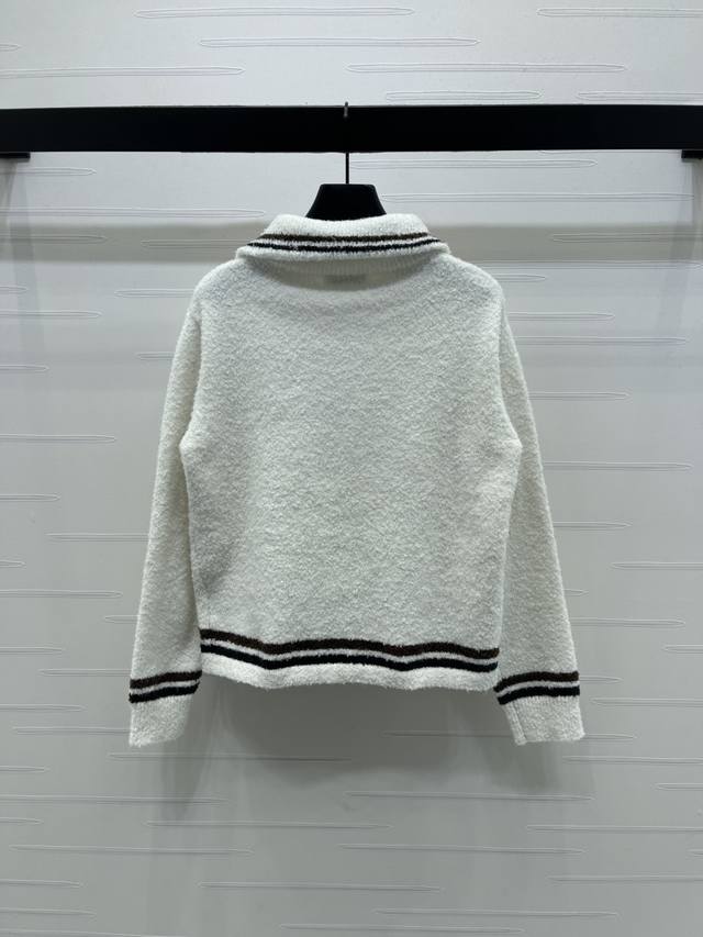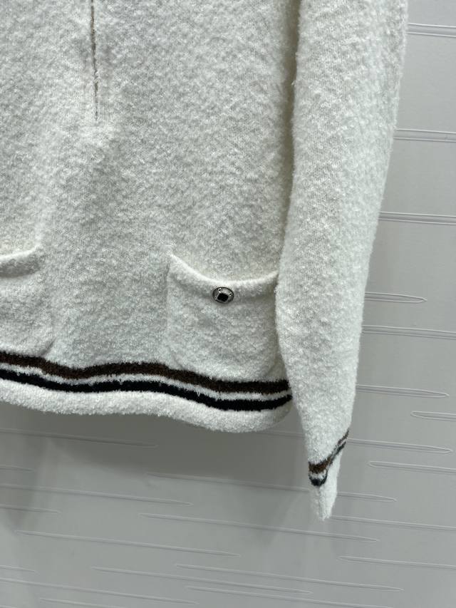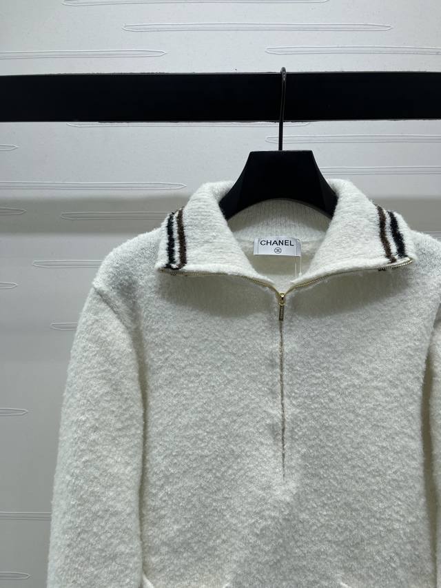 New Arrival! High-Quality Original Chanel* 2025 Autumn/Winter Collection! Collared Half-Zip Knit Long-Sleeve Sweater! Made with custom wool blend yarn, it's soft, comfortable, and delicate with a clear wool-like texture. The high-quality design features a round button front and double pockets for a luxurious and relaxed feel. The contrasting stripes at the hem and cuffs add depth and dimension to the design. The cut is flattering and forgiving, creating a youthful and stylish look! 1 color! Sizes SM-L3! High-quality bulk order A706B330C DDD