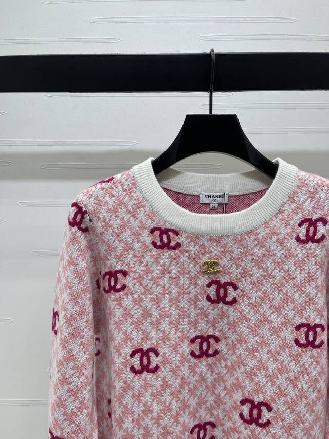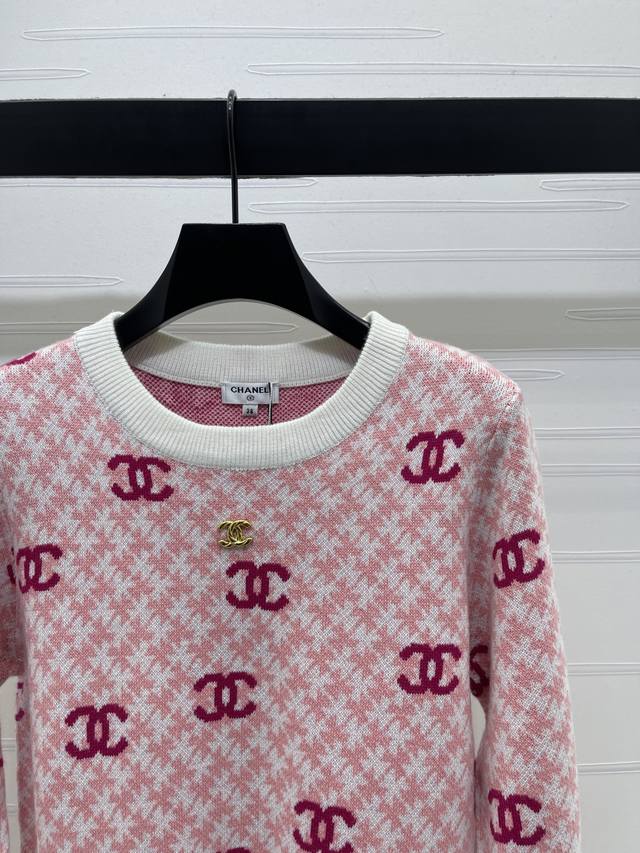 New Arrival! High-quality original Chanel* 2025 Autumn/Winter collection! Color-blocked pullover long-sleeved sweater! Custom imported wool knit material, soft and comfortable with a premium feel. The sweater is covered in the iconic double-C jacquard pattern, showcasing the brand's style and adding a touch of Korean gentleness and artistic flair. Perfect for everyday wear! 3 colors! Sizes SM-L3! High-quality bulk order.