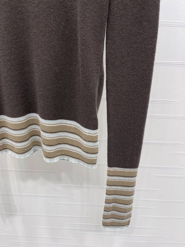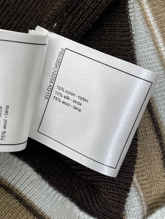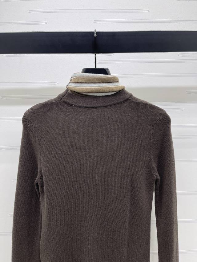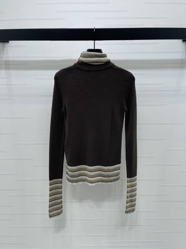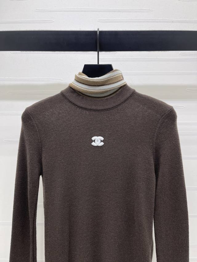 New Arrival: High-Quality Original Chanel* 2025 Autumn/Winter Collection! Color-blocked striped letter knit turtleneck base layer! Crafted from custom wool yarn with a fine knit density, offering a clear wool-like texture, comfortable and skin-friendly. The high neck and structured shoulders create a relaxed and effortless look. Contrasting ribbed trim at the cuffs, neckline, and hem adds elasticity and comfort. A letter logo embellishment on the chest adds a touch of design sophistication. The regular slim fit is forgiving and stylish. Available in 2 colors! Sizes SM-L3! High-quality bulk order A706B350C DDD