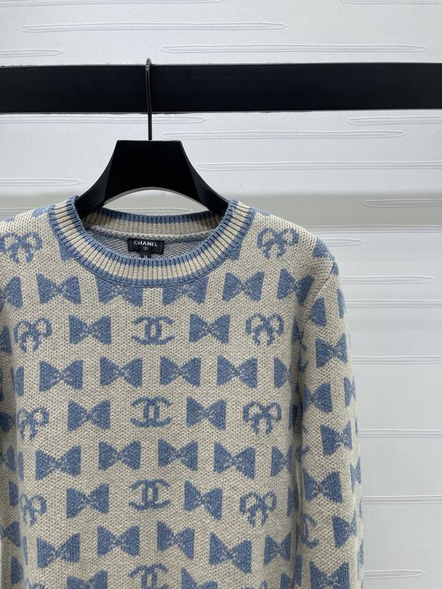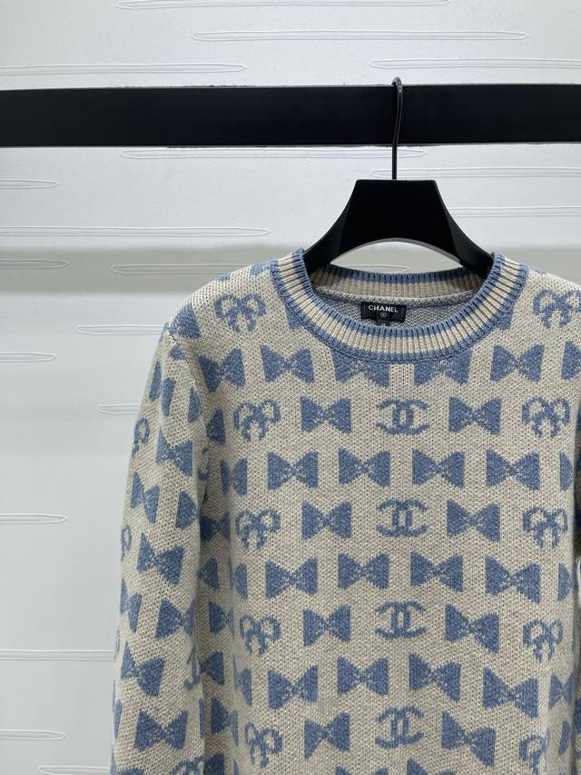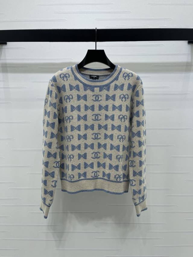 New Arrival: High-Quality Original Chanel* 2025 Autumn/Winter Collection! Crew Neck Jacquard Pullover Long-Sleeve Sweater! Crafted from custom wool yarn, superior texture, comfortable to wear. The crew neck long-sleeve sweater features a ribbed hem for a unified design aesthetic, resulting in a sophisticated and structured look. The all-over bow pattern and double C logo add a touch of chic flair, creating the brand's signature stylish look. The regular cut is forgiving and flattering. Available in 3 colors! Sizes SM-L3! High-quality bulk order.
