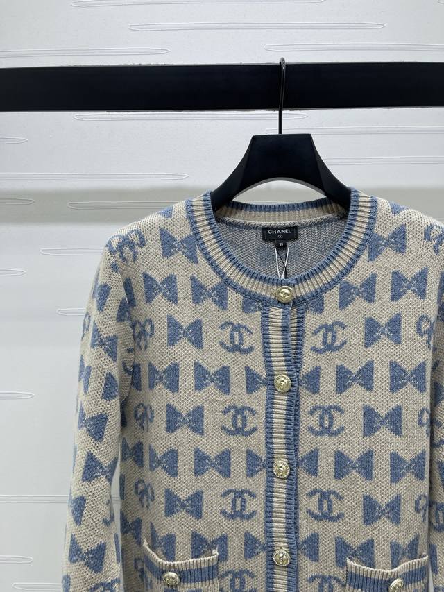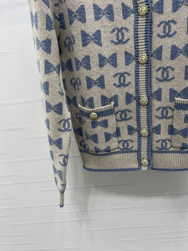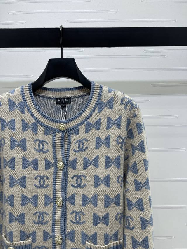 New Arrival: High-Quality Original Chanel* 2025 Autumn/Winter Collection! Crew Neck Jacquard Knit Cardigan! Crafted from custom wool yarn, superior texture, comfortable to wear. The crew neck knit cardigan features a ribbed hem for a unified design, resulting in a sophisticated and structured silhouette. The all-over bow pattern and double C logo add a touch of chic flair, creating the brand's signature stylish look. The regular cut is forgiving and flattering. Available in 3 colors! Sizes SM-L3! High-quality bulk order.