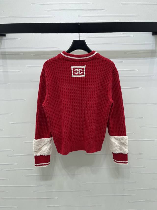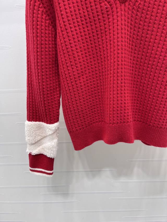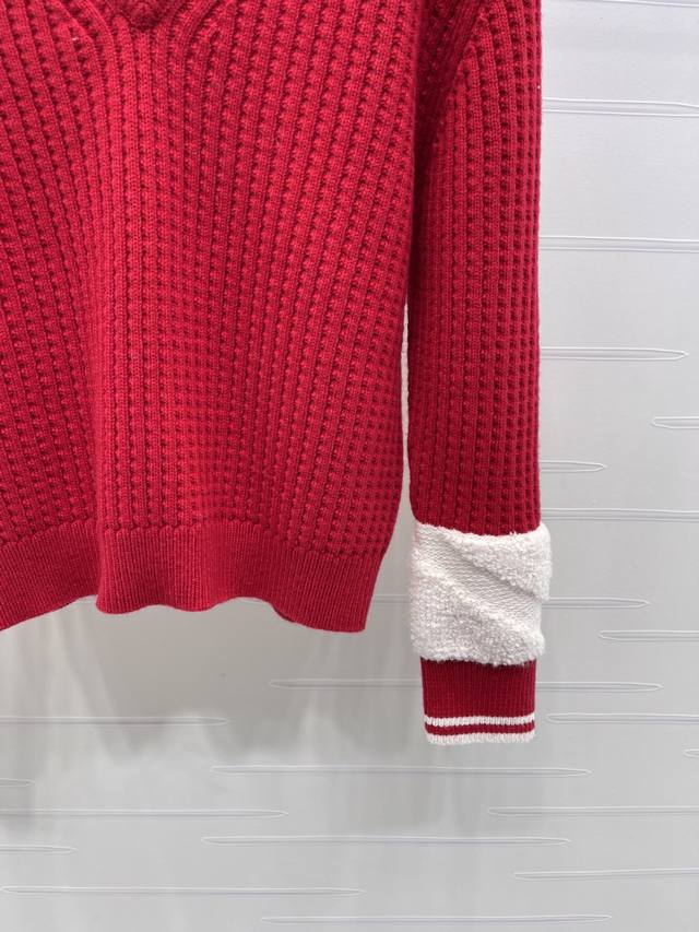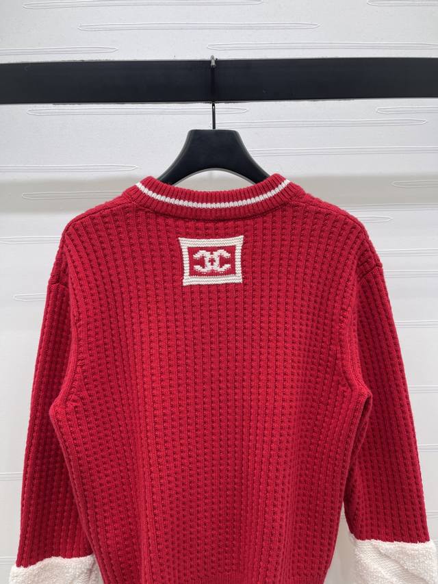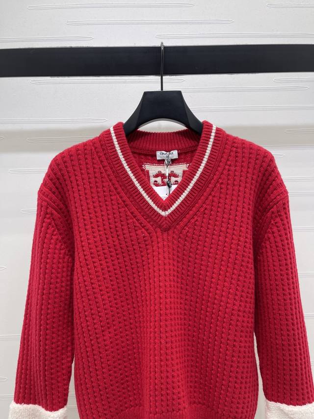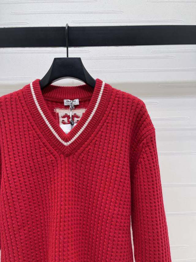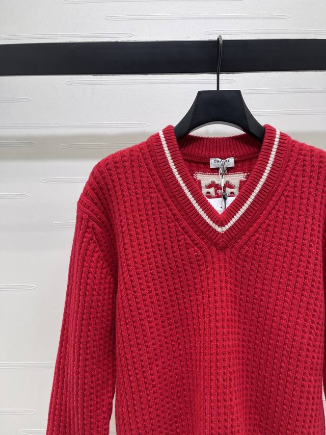 New Arrival! High-quality original Chanel* 2025 Autumn/Winter collection! Crochet V-neck sweater! Crafted from custom wool yarn from the 25Coco ski collection, this sweater boasts a delicate texture and comfortable wear. Features a V-neck, dropped shoulder design, and an all-over vertical ribbed knit texture creating a striped visual effect. The collar and cuffs feature a matching red and white stripe pattern. The back collar is adorned with an embroidered double-C logo. Highly stretchy, with rich and layered colors, this sweater offers a flattering fit and a youthful, stylish look. New red color available! Sizes SM-L3! High-quality bulk order A706B460C DDD
