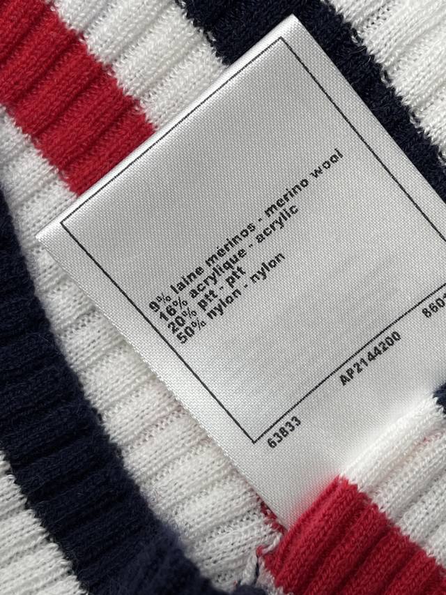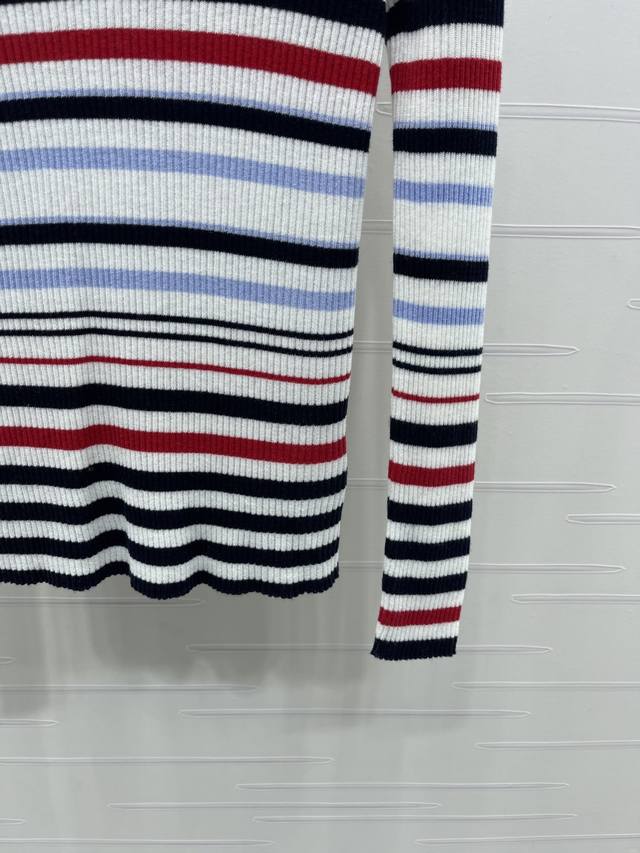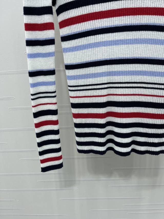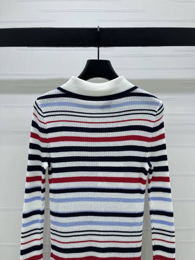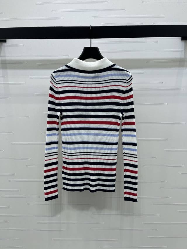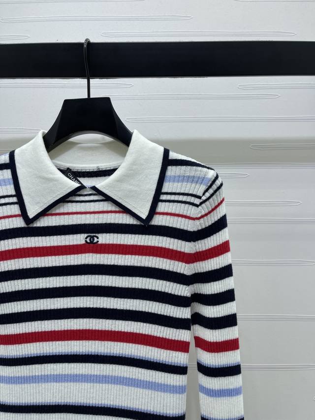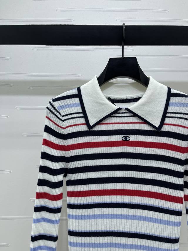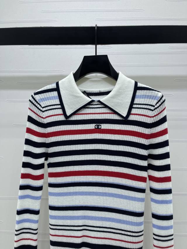 New Arrival! High-Quality Original Chanel* 2025 Autumn/Winter Collection! Striped Collared Knit Long-Sleeve Top! Crafted from custom Yb wool yarn, stretchy and comfortable with a premium feel. The collared knit top features a black and white neckline, while the overall design incorporates a variety of colored stripes of varying density and width, enhancing the overall stylish and casual look. Perfect for wearing alone or layering. The chest is adorned with an embroidered double-C logo, highlighting the brand's style. The slim-fit, stretchy cut is flattering and chic! 1 color! Sizes SM-L3! High-quality bulk order A706B390C DDD