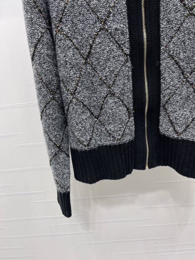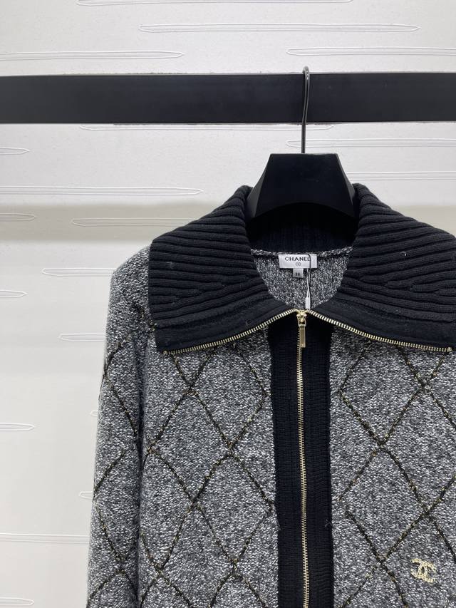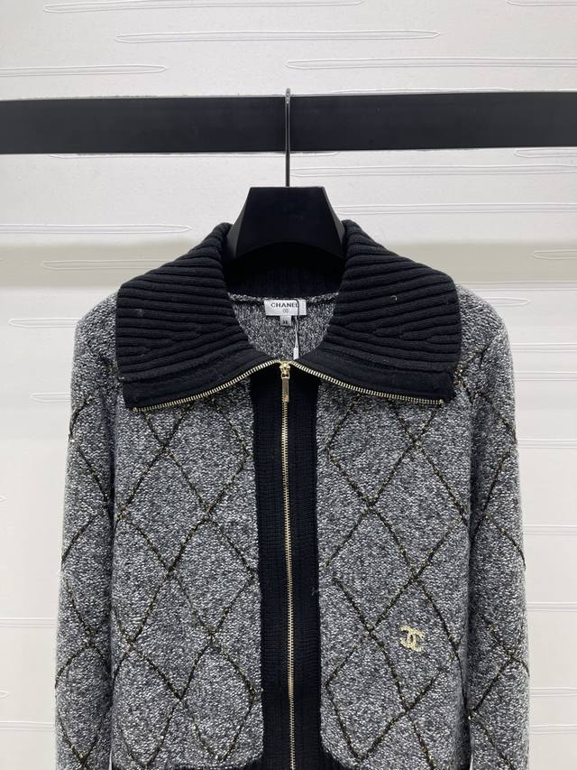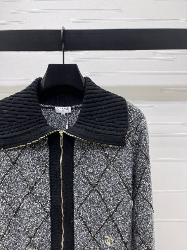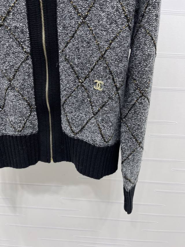 New Arrival! High-quality original Chanel* 2025 Autumn/Winter collection! Zippered lapel diamond-patterned long-sleeved cardigan! Made with custom wool yarn, this cardigan boasts a luxurious, comfortable, and soft texture. The fully open zipper design makes it easy to put on and take off. The ribbed trim accentuates a gentle and feminine look, creating a slimming and stylish silhouette. The double C logo on the hem adds a touch of sophistication. The regular fit is flattering for all body types and ages. A simple and versatile everyday style for autumn and winter! Available in 2 colors! Sizes SM-L3! High-quality bulk order A706B440C DDD