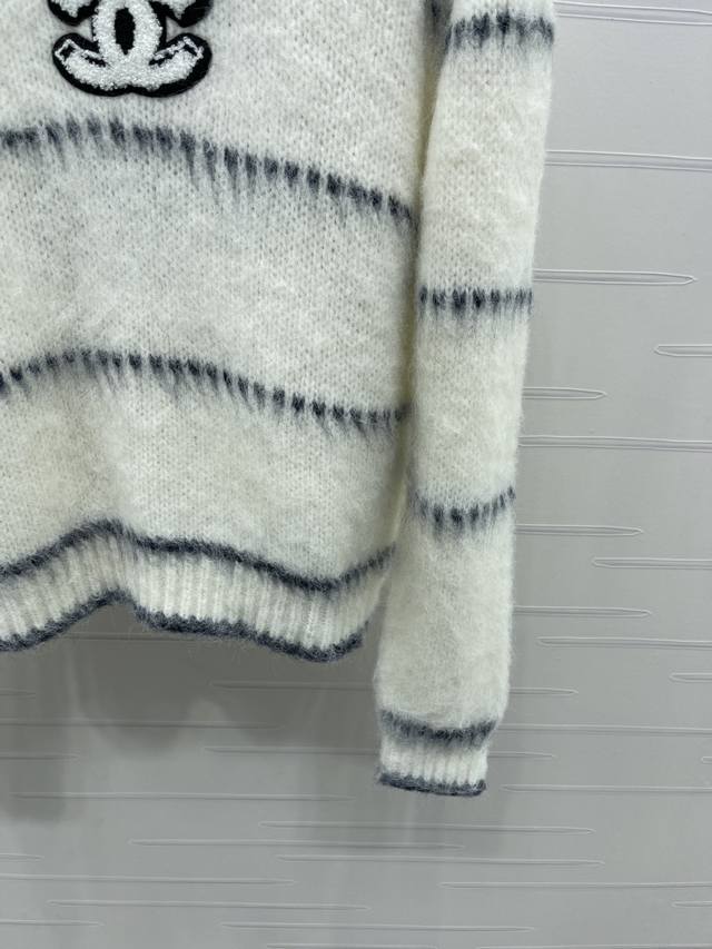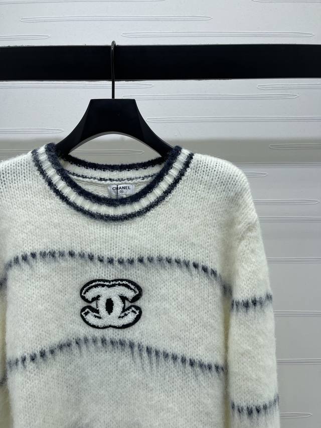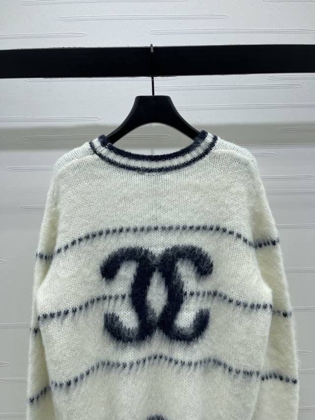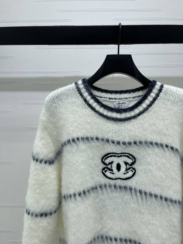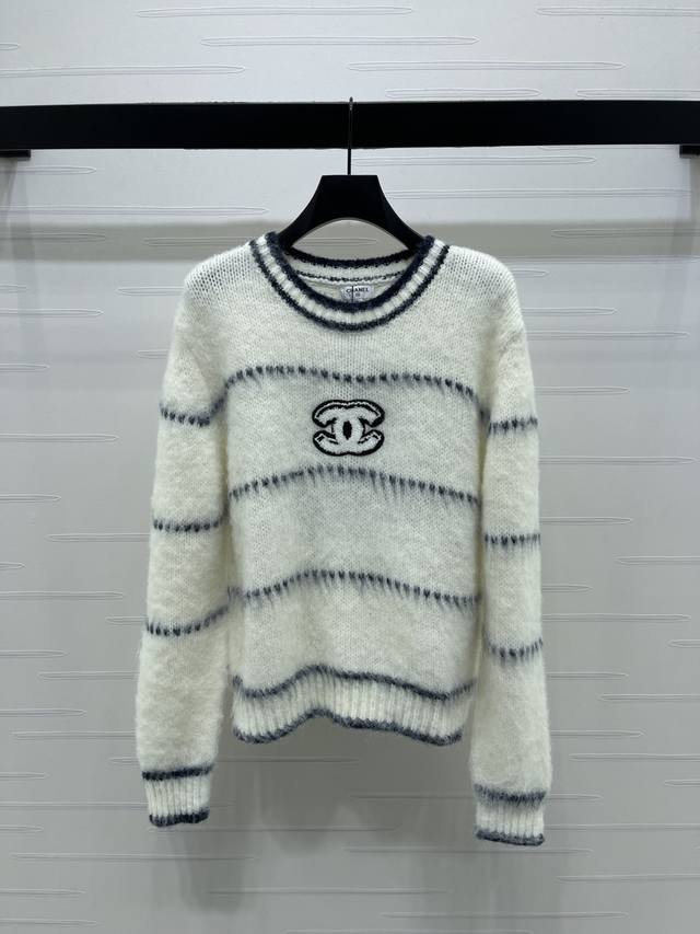 New Arrival! High-Quality Original Chanel* 2025 Early Autumn Collection! Striped Letter Crew Neck Long-Sleeve Sweater! Made with custom wool and mohair yarn, this crew neck pullover sweater features a contrasting color design throughout, accented with a double C logo on the chest, exuding a cute and lively style. Perfect for wearing alone or layering, suitable for commuting, dates, and many other occasions! 2 Colors! Sizes SM-L3! High-Quality Bulk Item