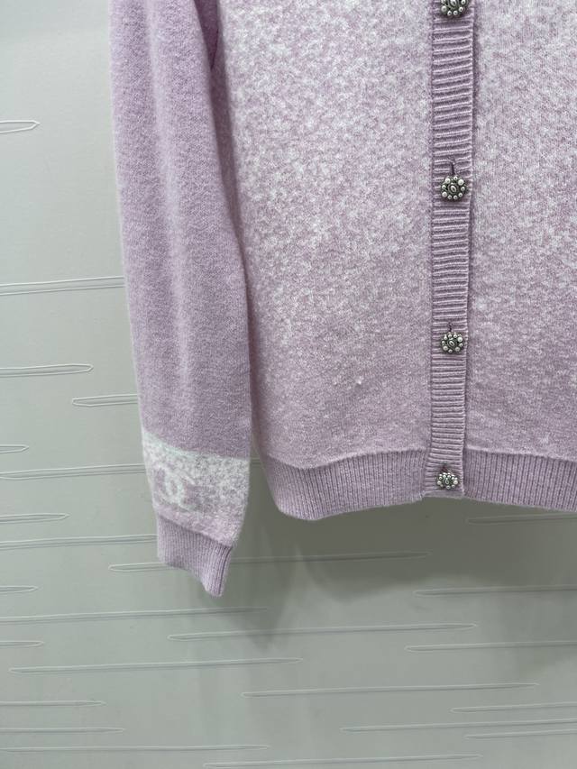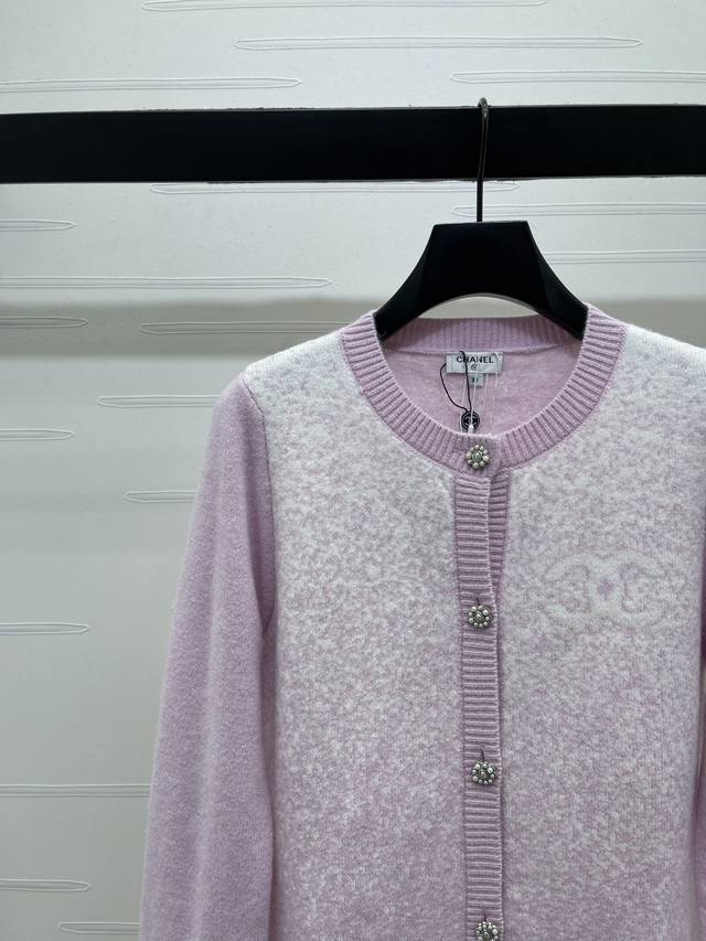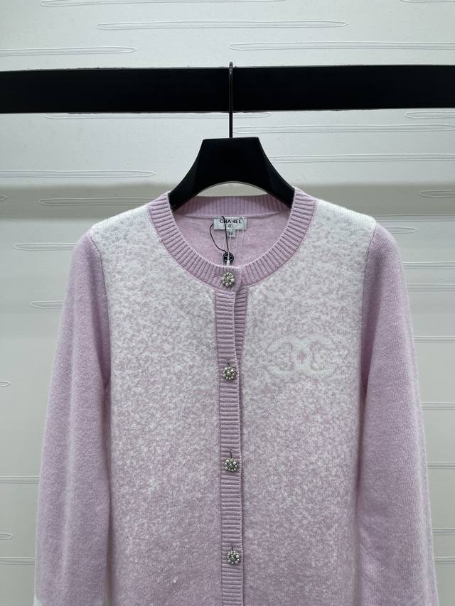 New Arrival: High-Quality Original Chanel* 2026 Early Spring Collection! Gradient Knit Long-Sleeve Cardigan! Crafted from custom wool yarn, the texture is delicate and comfortable to wear. The round neck long-sleeve cardigan features elastic ribbed trim, solid-color sleeves, and a contrasting gradient of hearts on the body. A double-C logo adorns the chest, and crochet lettering echoes the design at the back hem. The overall look is sophisticated yet casual, exuding a fashionable vibe! Available in 4 colors! Sizes SM-L3! High-quality bulk order.