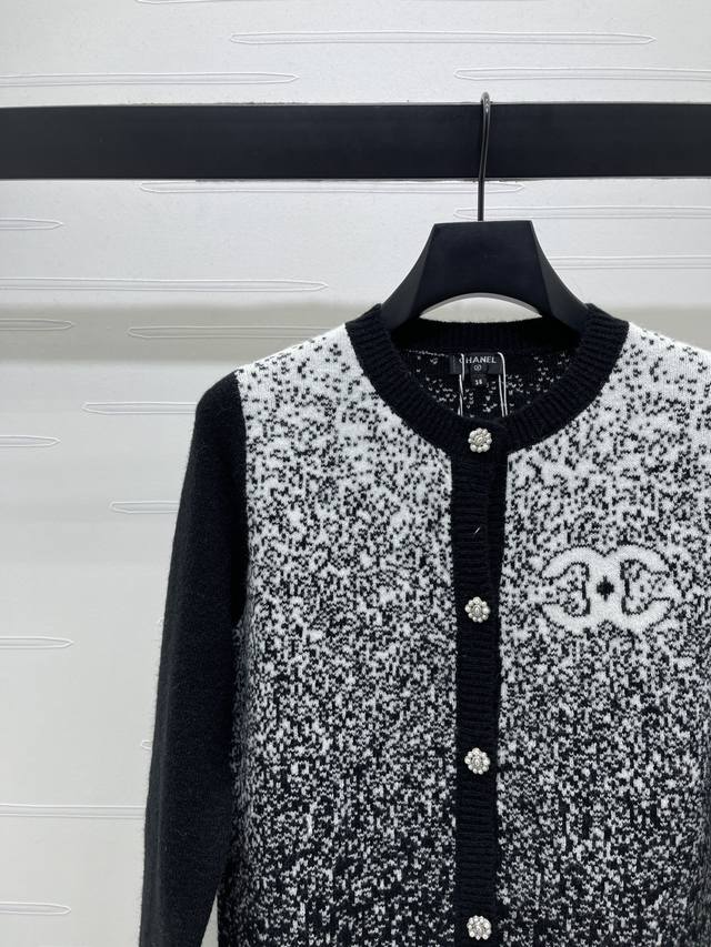 New Arrival: High-Quality Original Chanel* 2026 Early Spring Collection! Gradient Knit Long-Sleeve Cardigan! Crafted from custom wool yarn, the texture is delicate and comfortable to wear. The round neck long-sleeve cardigan features elastic ribbed trim, solid-color sleeves, and a contrasting gradient of hearts on the body. A double-C logo adorns the chest, and crochet lettering echoes the design at the back hem. The overall look is sophisticated yet casual, exuding a fashionable vibe! Available in 4 colors! Sizes SM-L3! High-quality bulk order.