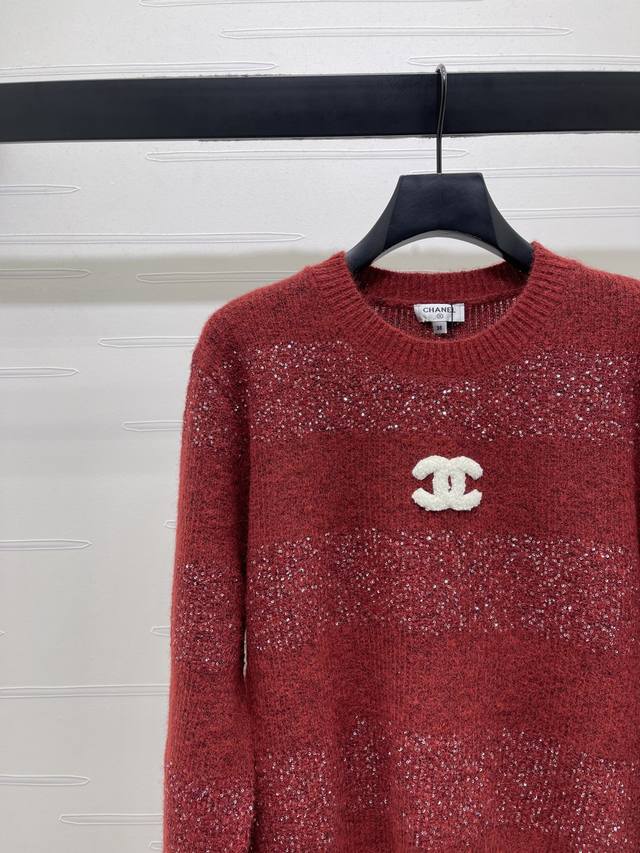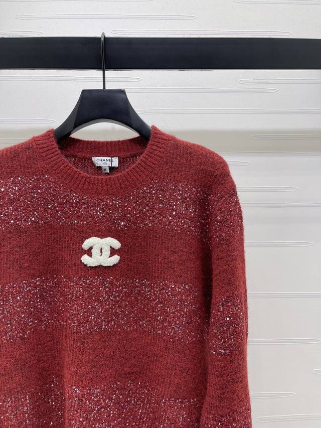 New Arrival! High-Quality Original Chanel* 2026 Early Spring Collection! Striped Sequin Pullover Sweater! Crafted with custom imported yarn, soft and delicate, comfortable to wear. The round neck pullover sweater features contrasting striped yarn interspersed with sequins, radiating a subtle luxury shimmer in the light. The double C logo on the chest adds a sweet touch, breaking the monotony and showcasing the brand's style. Perfect for everyday wear and commuting. Available in two colors! Sizes SM-L3! High-quality bulk order A706B400C DDD