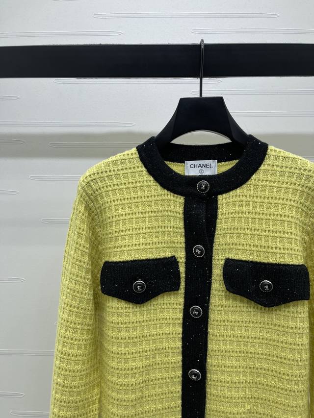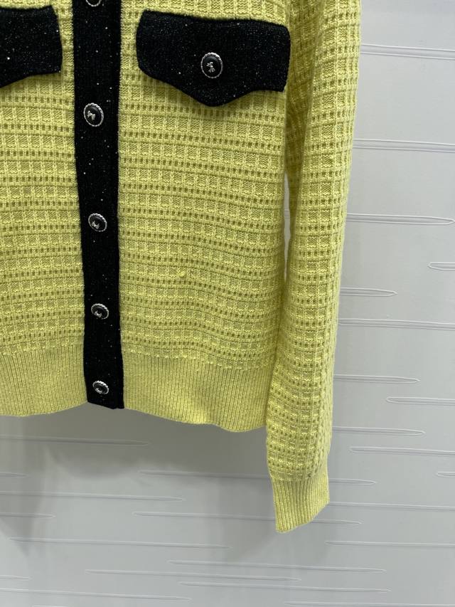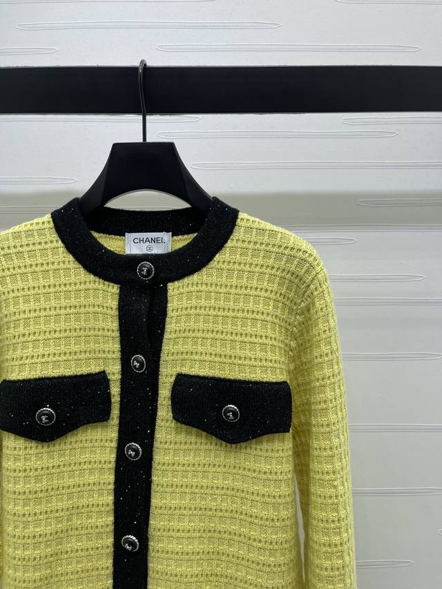 New Arrival! Original High-Quality Chane* 2025 Autumn/Winter Collection! Color-blocked Crew Neck Knit Cardigan! Custom imported wool knit material, comfortable and skin-friendly with a soft texture. Color-blocked details extend from the neckline and front to the hem, adding a sense of style and layering. All-over three-dimensional crochet embroidery, single-breasted button closure, symmetrical pockets, and embellishments along the upper edge echoing the brand's style. The unique fabric and crew neck cut create a relaxed and effortless look. Stylish and relaxed! 3 colors! Sizes SM-L3! High-quality bulk order A706B420C DDD