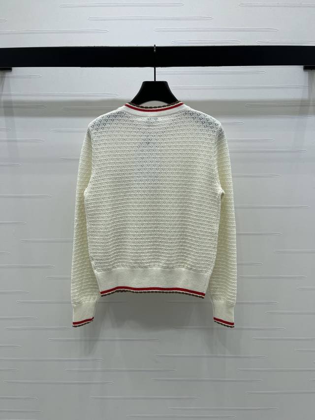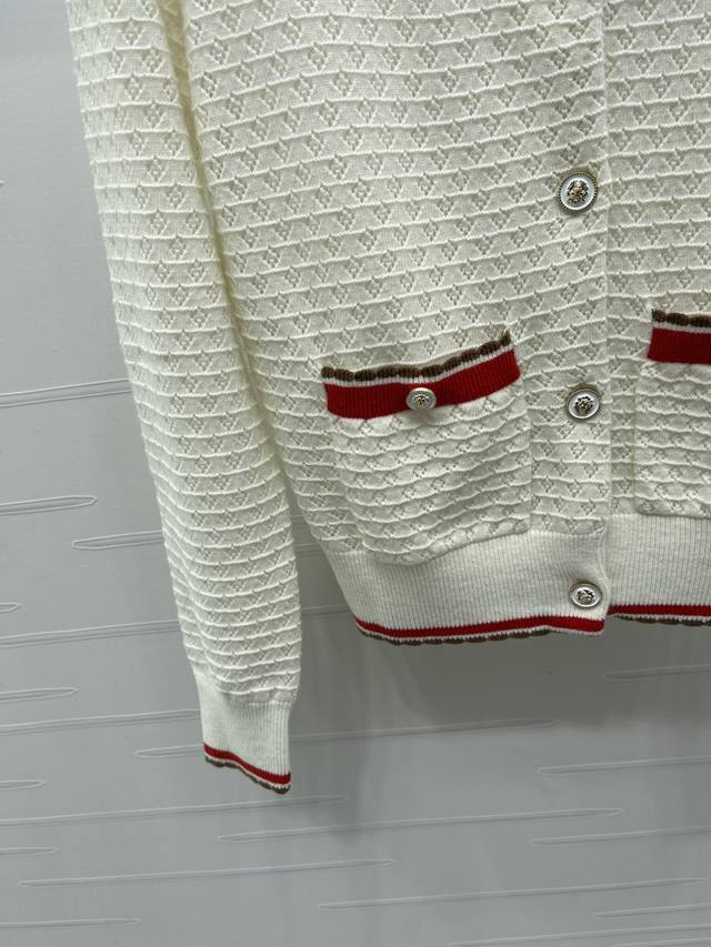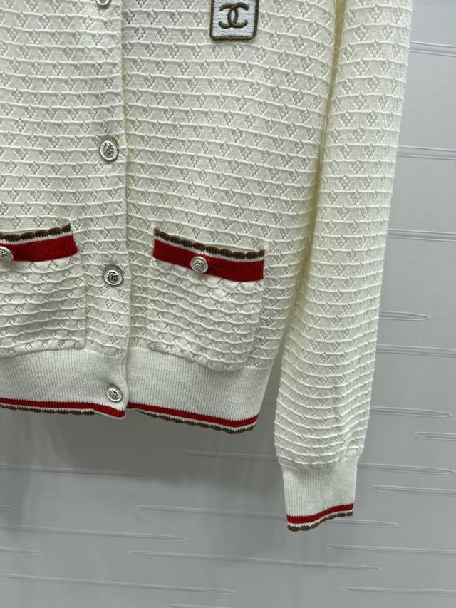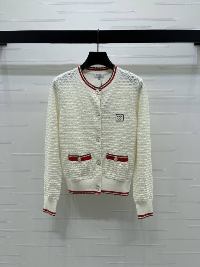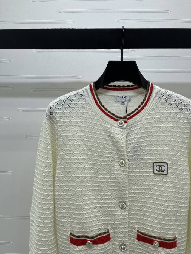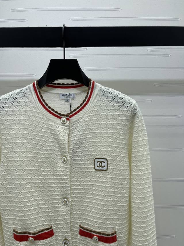 New Arrival! Original High-Quality Chane* 2025 Autumn/Winter Collection! Color-blocked Crew Neck Knit Cardigan! Custom imported wool knit material, comfortable and skin-friendly with a soft, plush texture. Lace trim on the collar, cuffs, and hem, striped edges, and elastic details add a sense of style and layering. All-over openwork crochet, single-breasted button placket, symmetrical pockets, and embellishments on the upper edge echo the brand's style. The unique fabric and crew neck cut create a relaxed and effortless look. Stylish and relaxed! 2 colors! Sizes SM-L3! High-quality bulk order A706B440C DDD