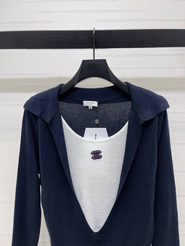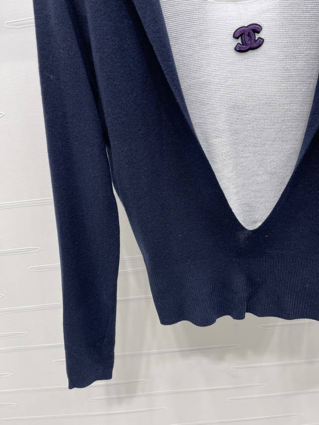 New Arrival! Original High-Quality Chane* 2025 Autumn/Winter Latest Collection! Color-blocked Faux Two-Piece Knit Long-Sleeve Top! Crafted from custom wool yarn, this comfortable, soft, and highly elastic knit long-sleeve top features a turn-down collar and a faux two-piece design. The lining peeks out from the neckline, creating a color-blocked effect with the outer layer, resulting in a rich sense of layering. The letter logo decoration on the chest highlights the brand's high-end style. The garment is comfortable and stretchy, adding a lively touch to any outfit. It exudes an elegant and sophisticated brand image without needing any extra embellishment. The fitted silhouette is smooth and slimming! 3 Colors! Sizes SM-L3! High-quality bulk order.