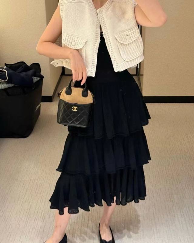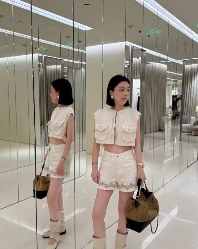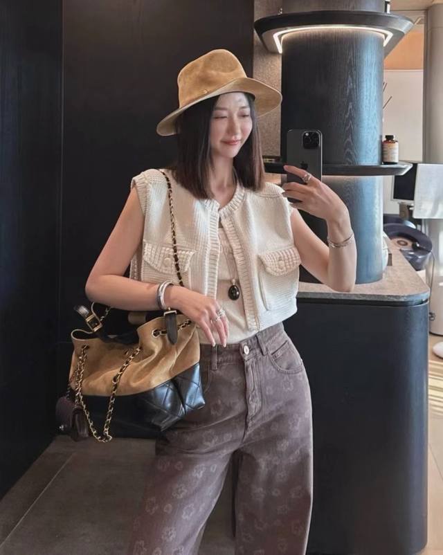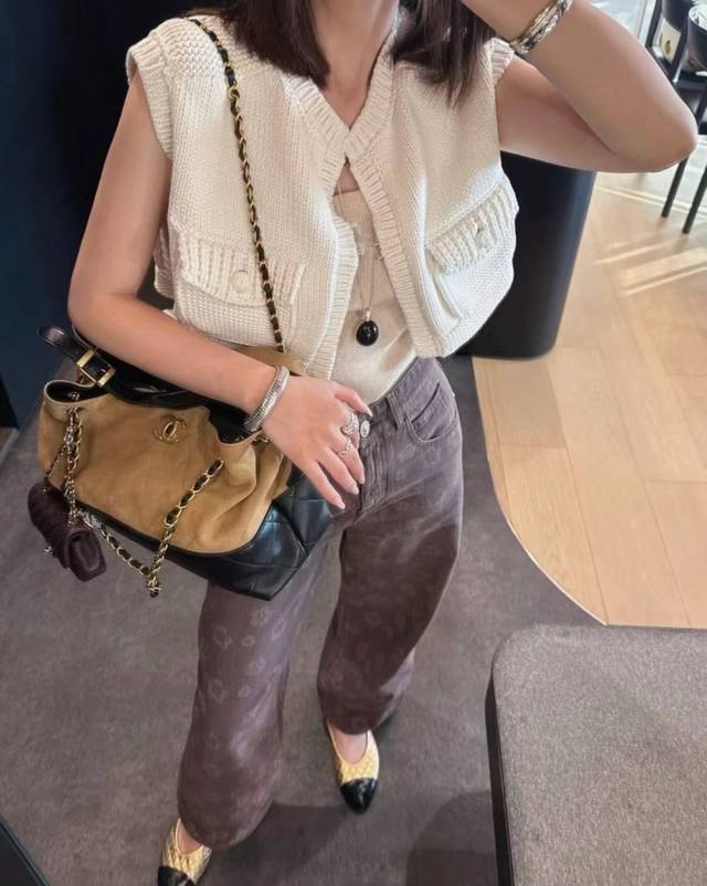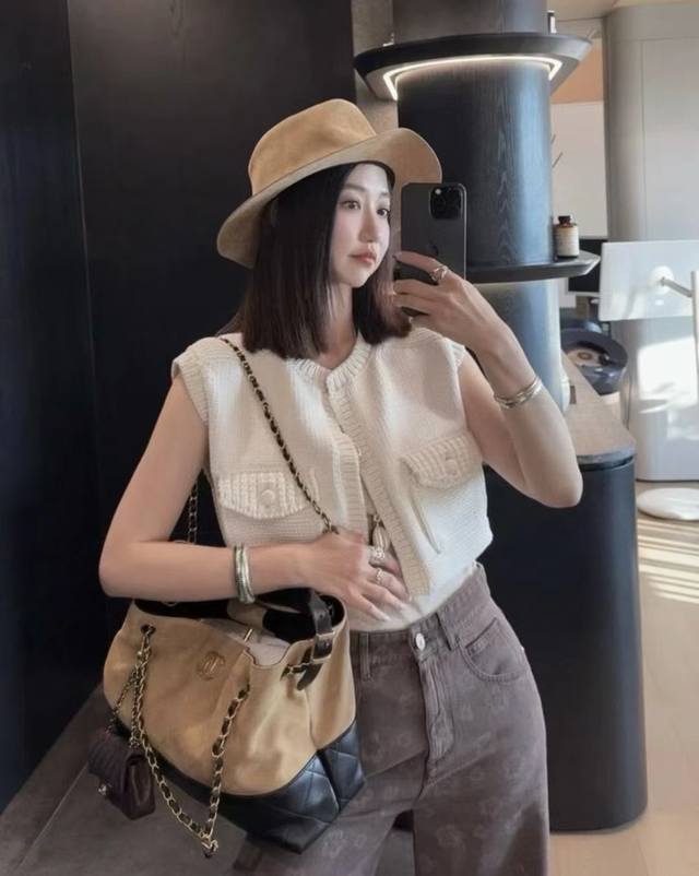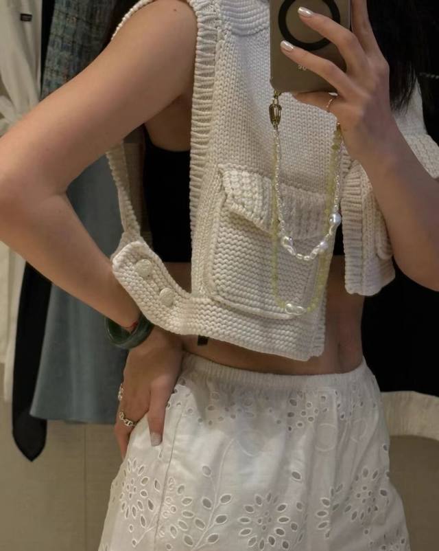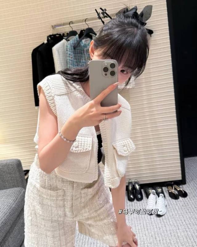 New Chane* Small Xiangfeng Camellia Pocket Short Knitted Vest