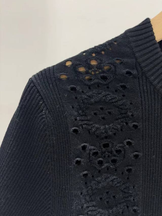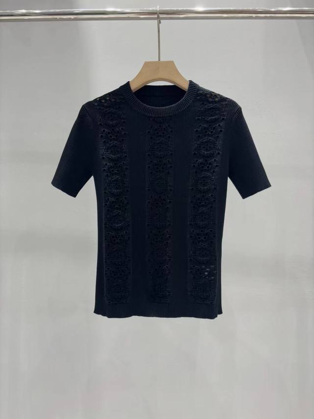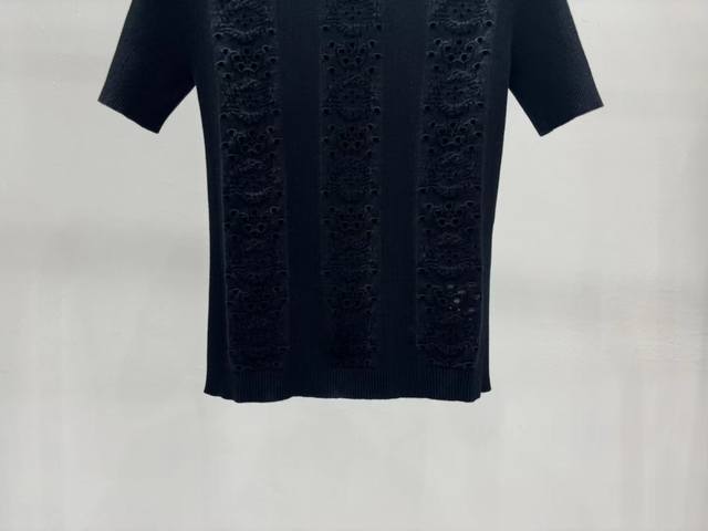 New Chanel 25 new double C Logo hollow floral short-sleeved sweater Size: Sml D