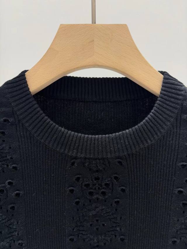 Chanel 25 new double C Logo hollow floral short-sleeved sweater